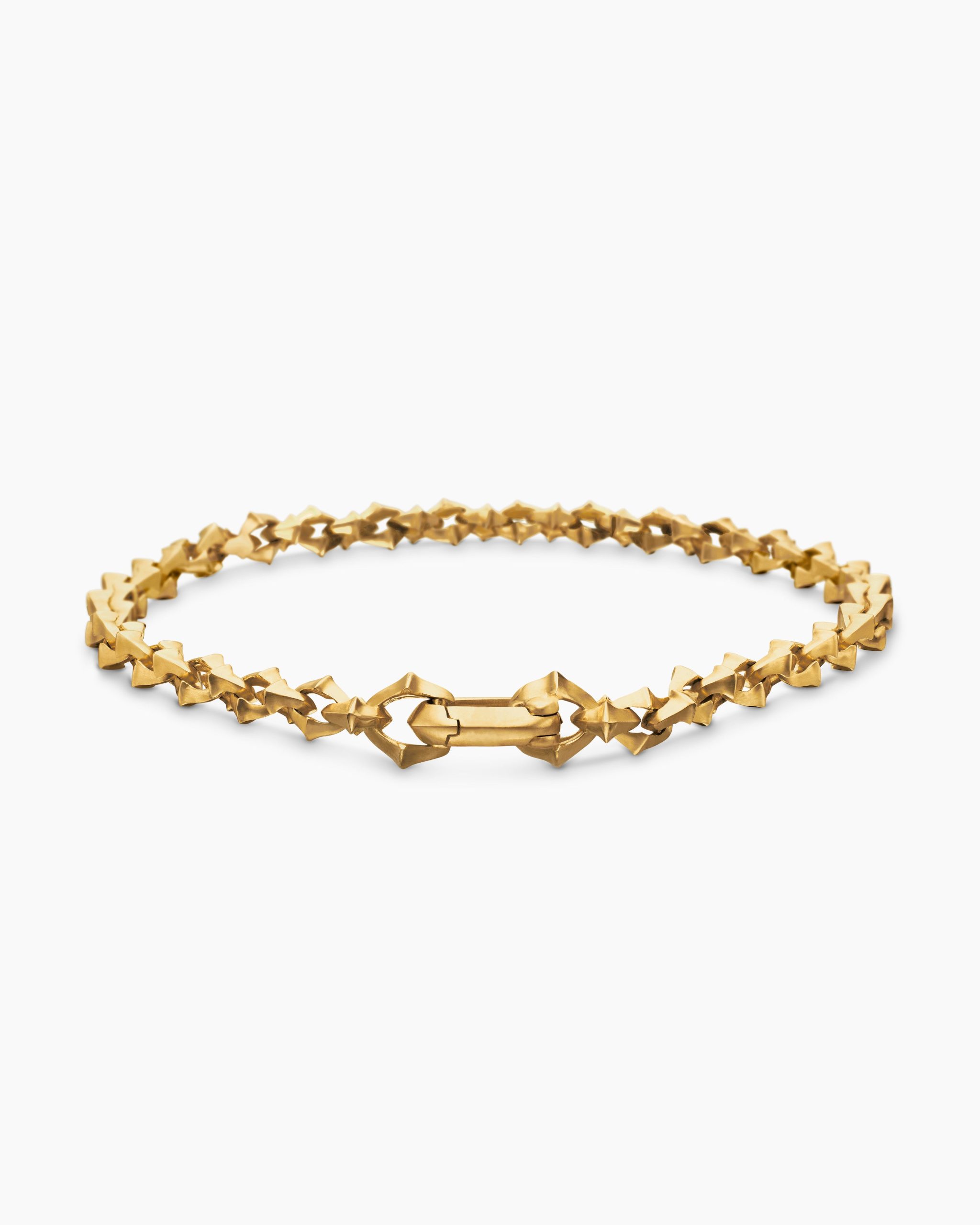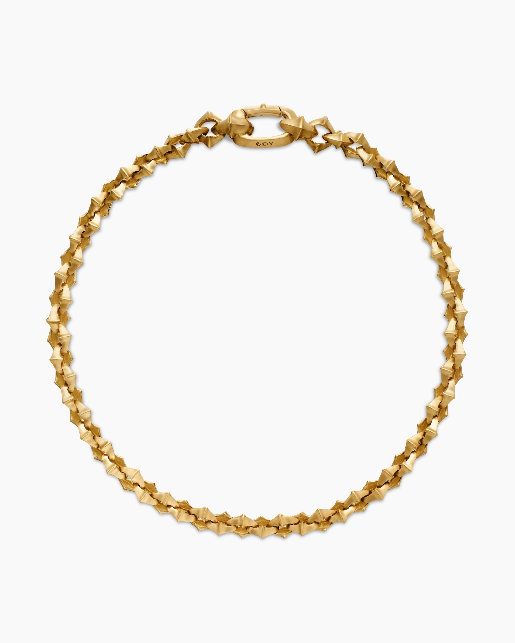 This collection was inspired by medieval chains, symbols and armor that captivated Evan Yurman on a tour of Venice. With rich patinas and the juxtaposition of polished and stippled textures, the hand-finished designs reinterpret ancient motifs.n nnt18-karat yellow goldntBracelet, 4mmntPush claspntThis item can be engraved. Please contact customer care for more information.n