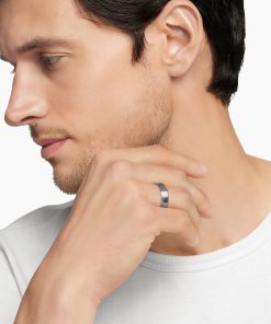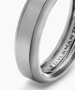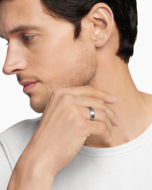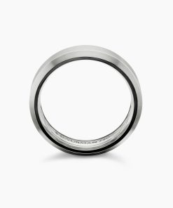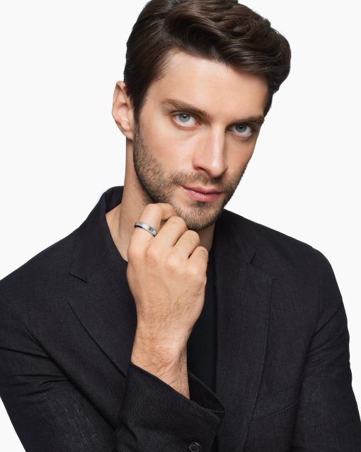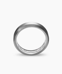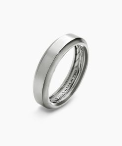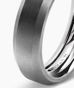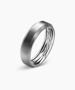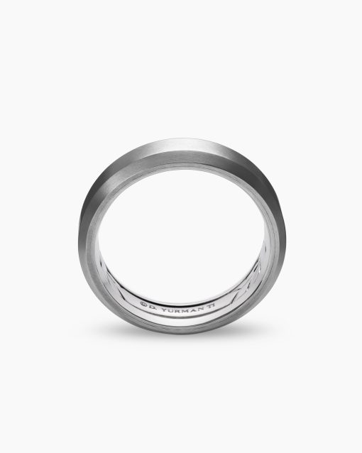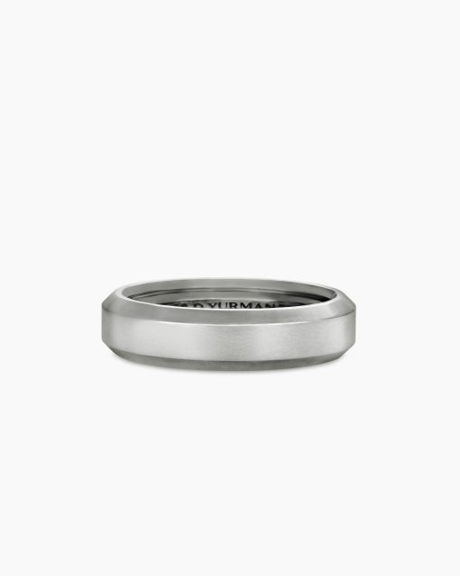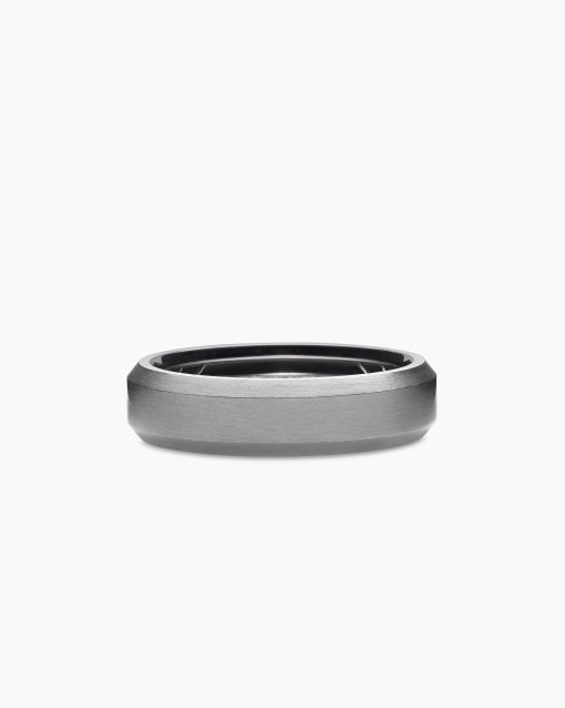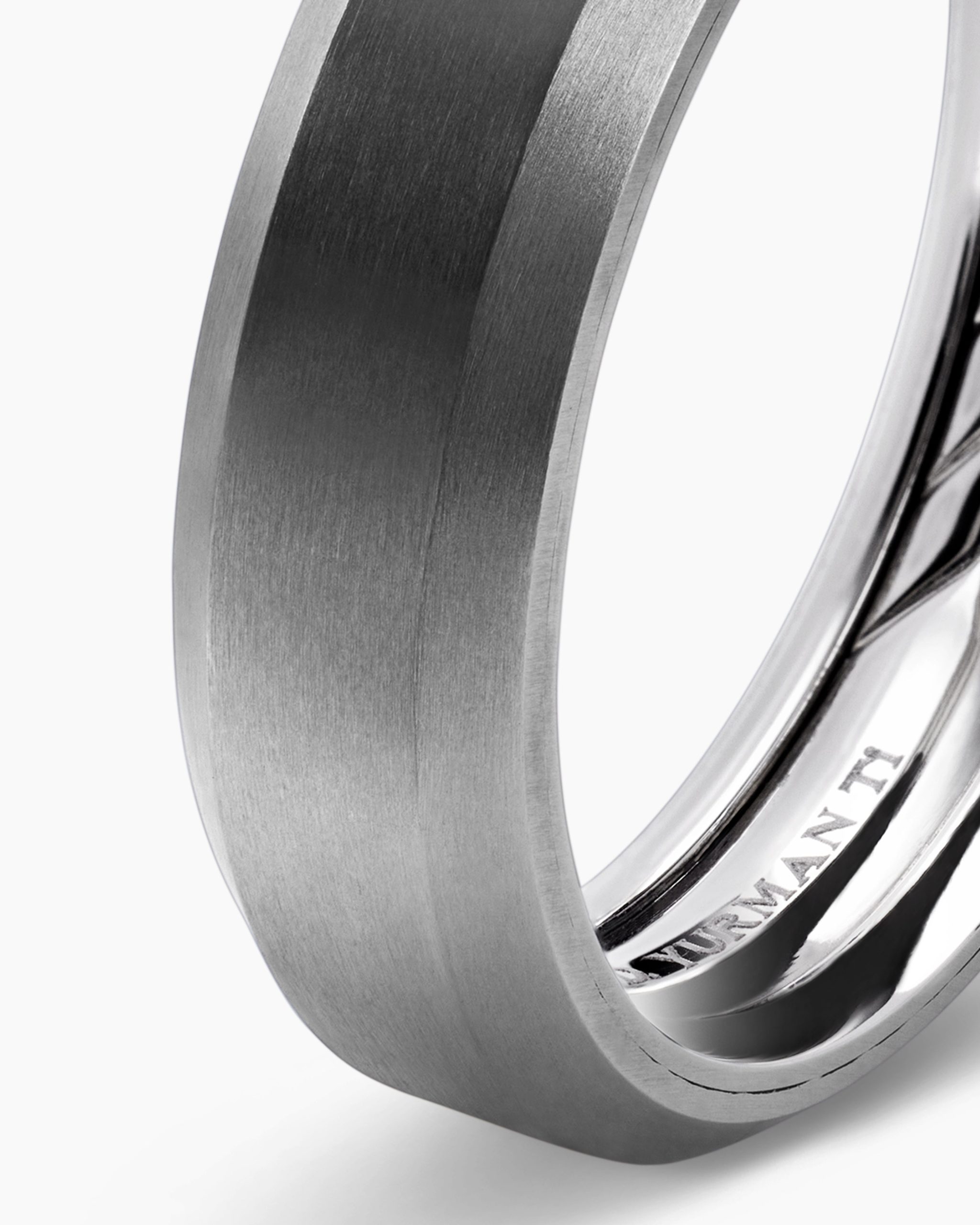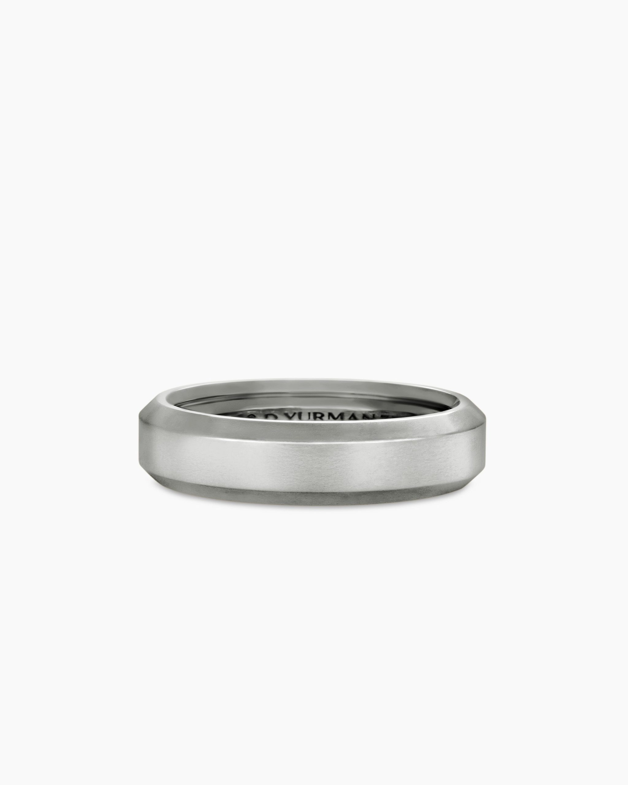 This hand-finished piece is inspired by beveled edges. Grey titaniumRing, 6mmThis item can be engraved. Please contact customer care for more information.