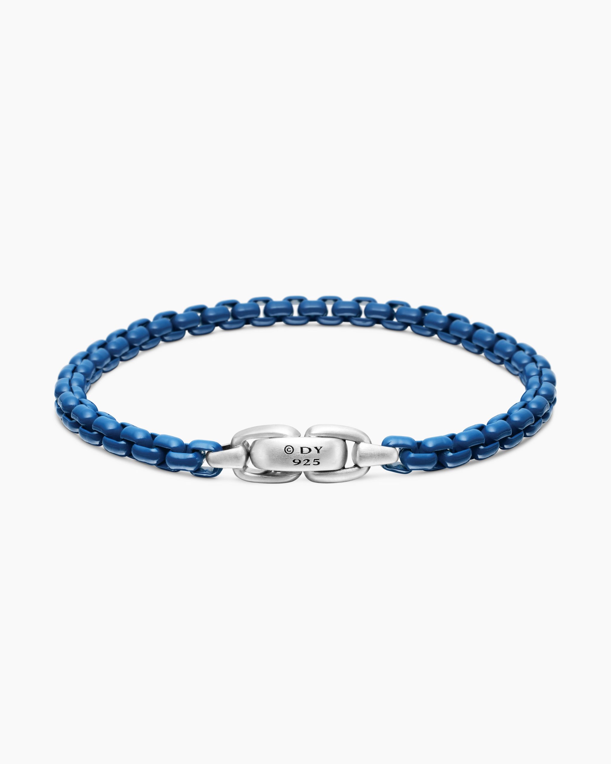 Inspired by classical and original motifs, David Yurman chain necklaces and bracelets showcase masterful craftsmanship, with sculptural links carved and assembled for seamless movement. Ideal for layering, these timeless chains are the foundation of a jewelry collection, whether worn alone or paired with a pendant.Sterling silver with stainless steelBlue colored acrylicBracelet, 5mmPush clasp