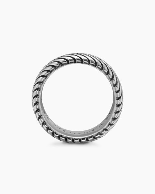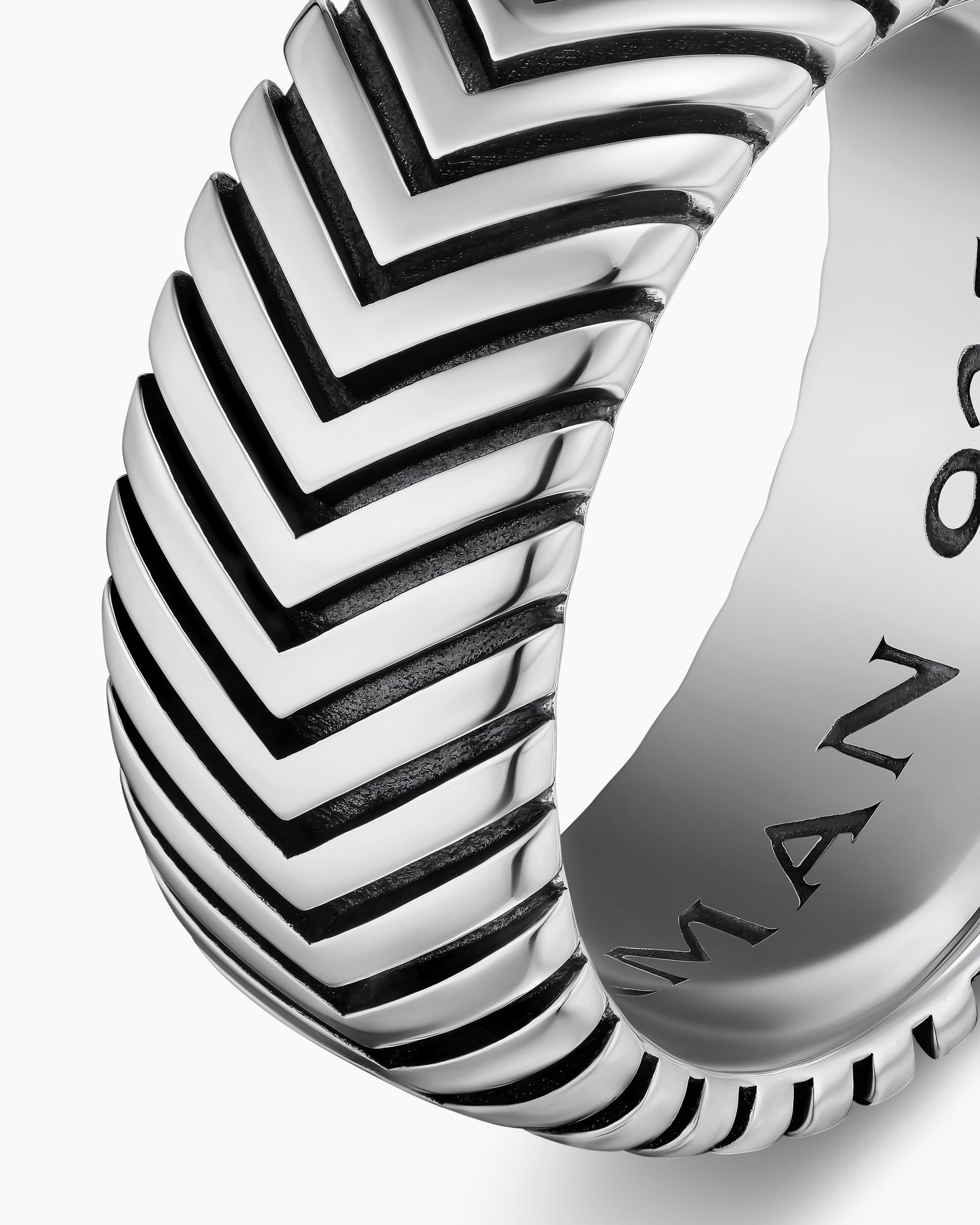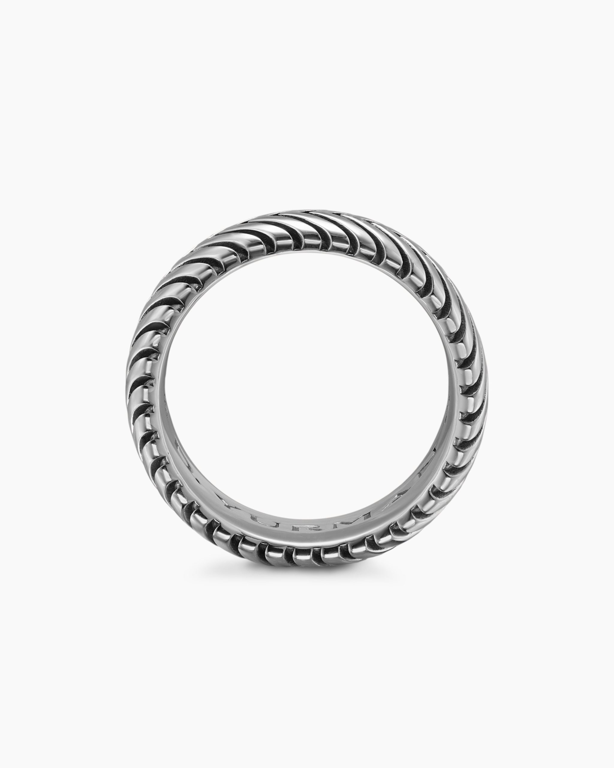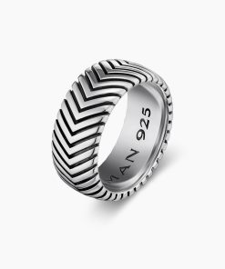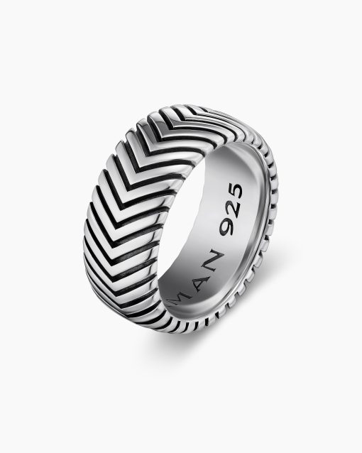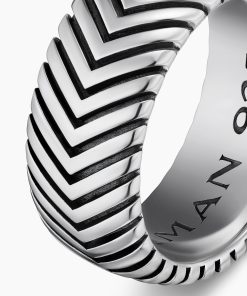 Marked by its double-helix pattern, Chevron is a mirror image of Cable, the house’s signature motif. The ancient V-shaped design offers a sense of modern sophistication, expertly crafted in refined materials, with deep cuts, precise angles, and a play of light and dark to evoke a feeling of forward momentum in the pursuit of excellence. Its elevated look fuses luxury and practicality for everyday wear, imbuing an essence of timelessness and versatility.Sterling silverRing, 10mmThis item can be engraved. Please contact customer care for more information.