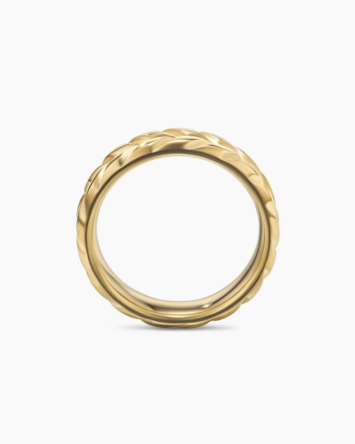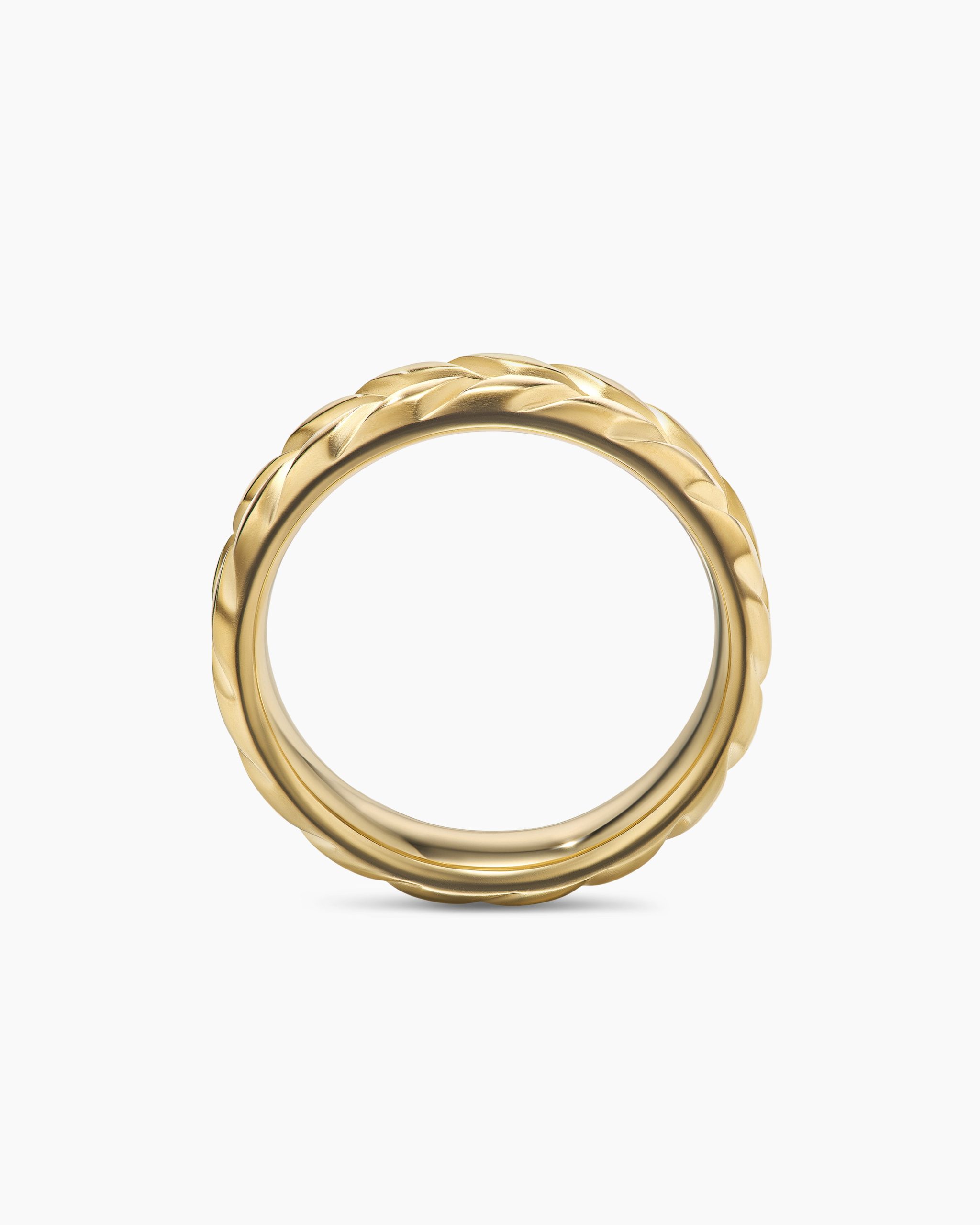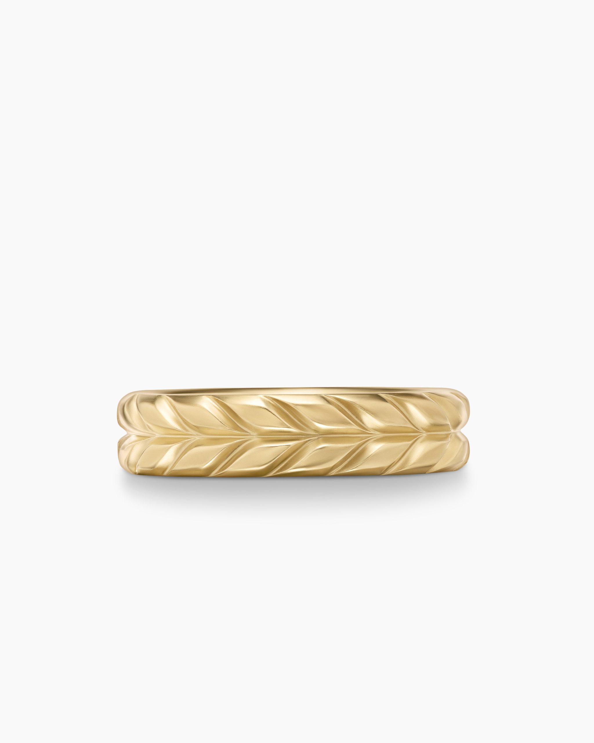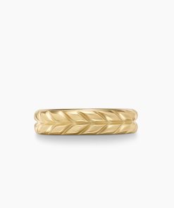 David Yurman skillfully reinterprets chevron—the ancient V-shaped pattern used in architecture and art—in this modern, sculptural collection. Viewed in relation to one another, each half of the motif is a mirror image of Cable. 18-karat yellow goldRing, 6mmThis item can be sized down. Please contact customer care for more information.This item can be engraved. Please contact customer care for more information.
