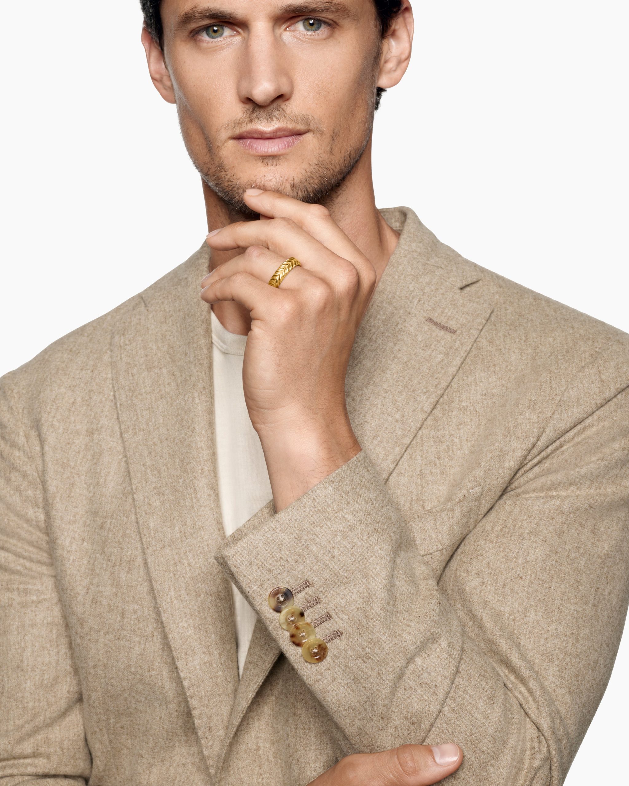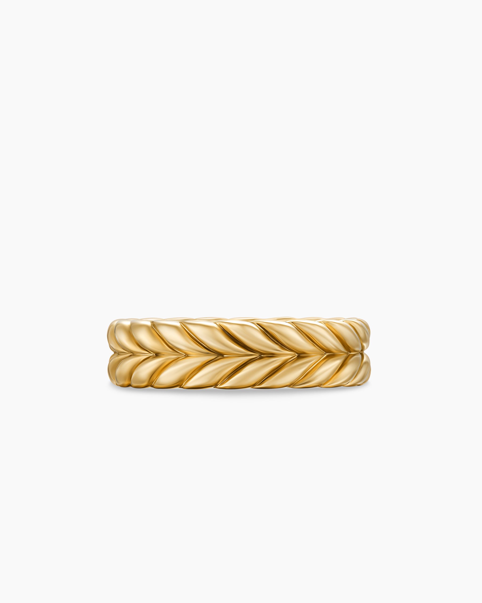 Marked by its double-helix pattern, Chevron is a mirror image of Cable, the house’s signature motif. The ancient V-shaped design offers a sense of modern sophistication, expertly crafted in refined materials, with deep cuts, precise angles, and a play of light and dark to evoke a feeling of forward momentum in the pursuit of excellence. Its elevated look fuses luxury and practicality for everyday wear, imbuing an essence of timelessness and versatility.18-karat yellow gold Ring, 6.2mmThis item can be engraved. Please contact customer care for more information.