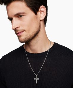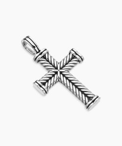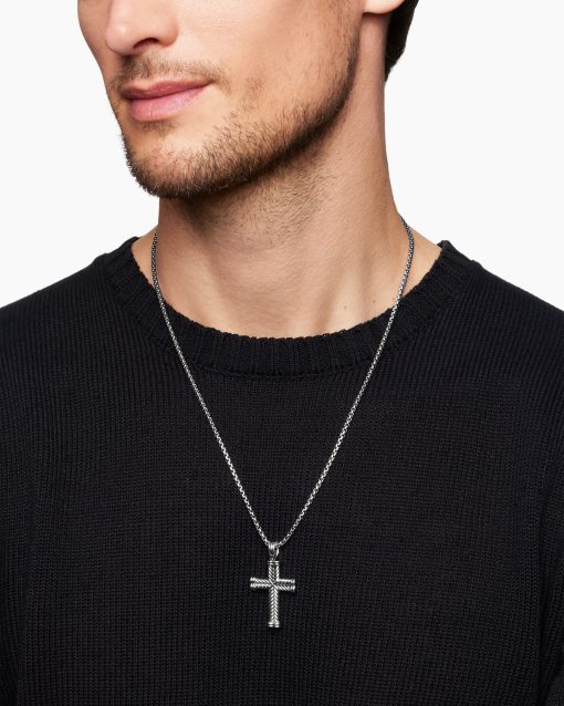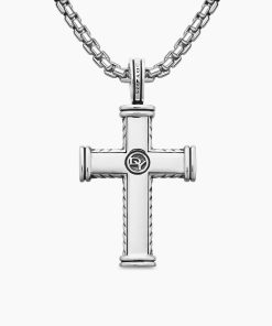 David Yurman skillfully reinterprets chevron—the ancient V-shaped pattern used in architecture and art—in this modern, sculptural collection. Viewed in relation to one another, each half of the motif is a mirror image of Cable. Sterling silverCross, 33.5 x 24mmPlease note: cross only; chain sold separatelyShown with: Box ChainThis item can be engraved. Please contact customer care for more information.