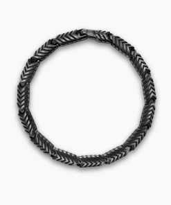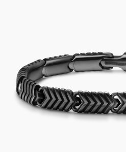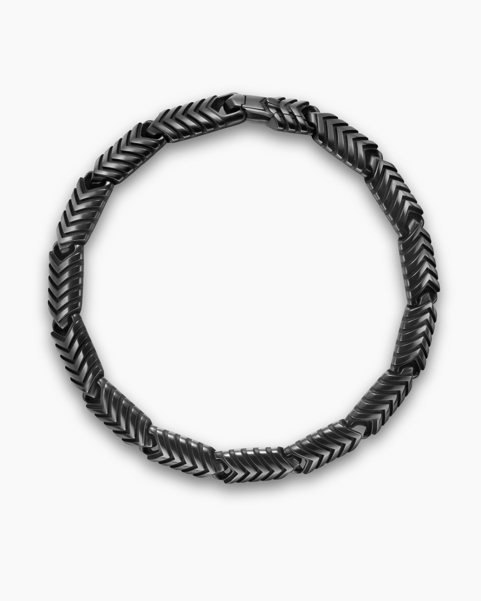 Marked by its double-helix pattern, Chevron is a mirror image of Cable, the house’s signature motif. The ancient V-shaped design offers a sense of modern sophistication, expertly crafted in refined materials, with deep cuts, precise angles, and a play of light and dark to evoke a feeling of forward momentum in the pursuit of excellence. Its elevated look fuses luxury and practicality for everyday wear, imbuing an essence of timelessness and versatility.Black titaniumBracelet, 7.6mmPush clasp