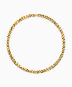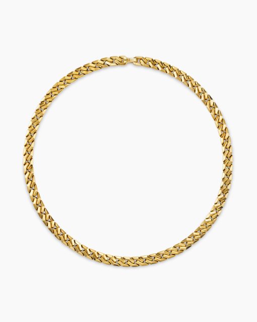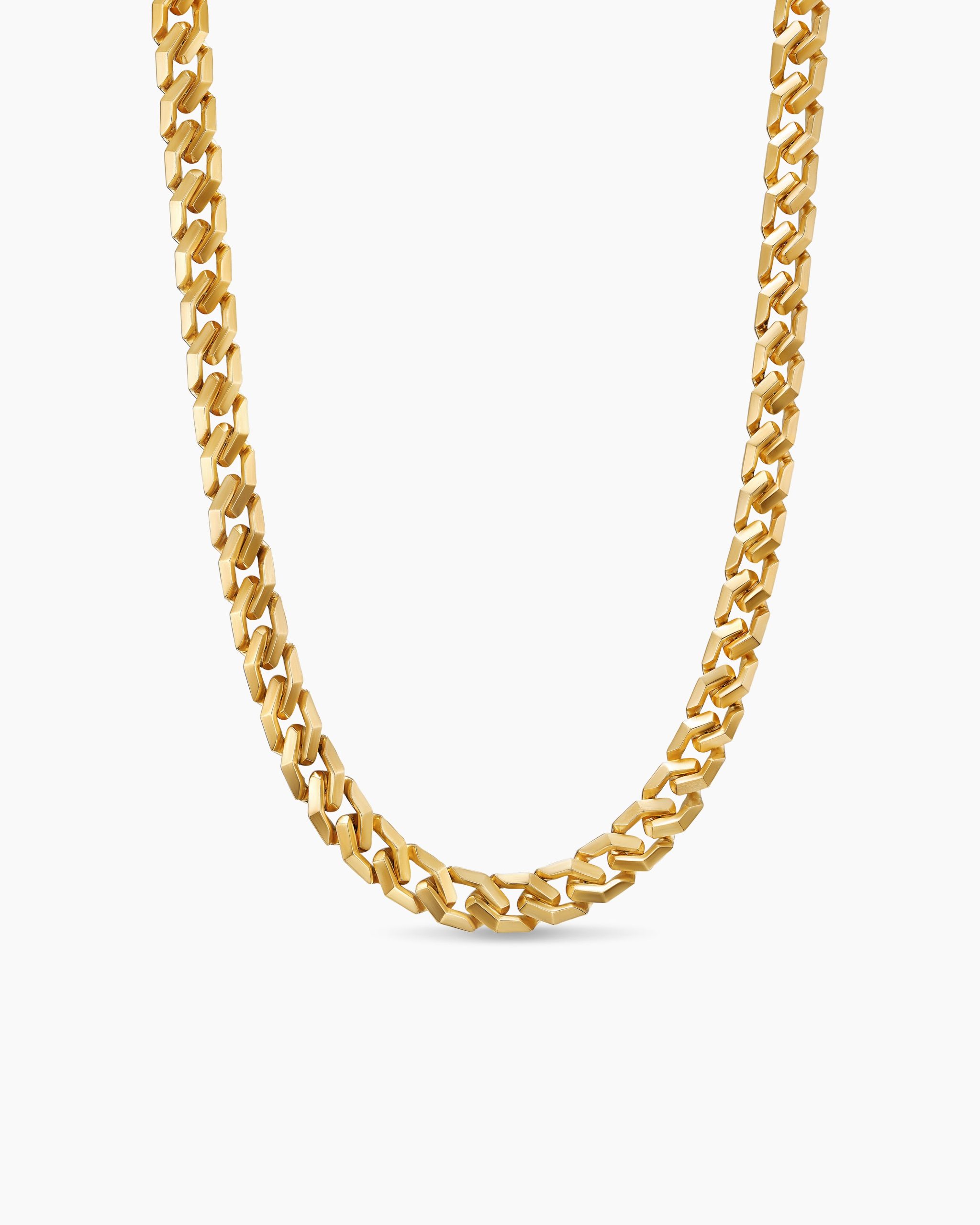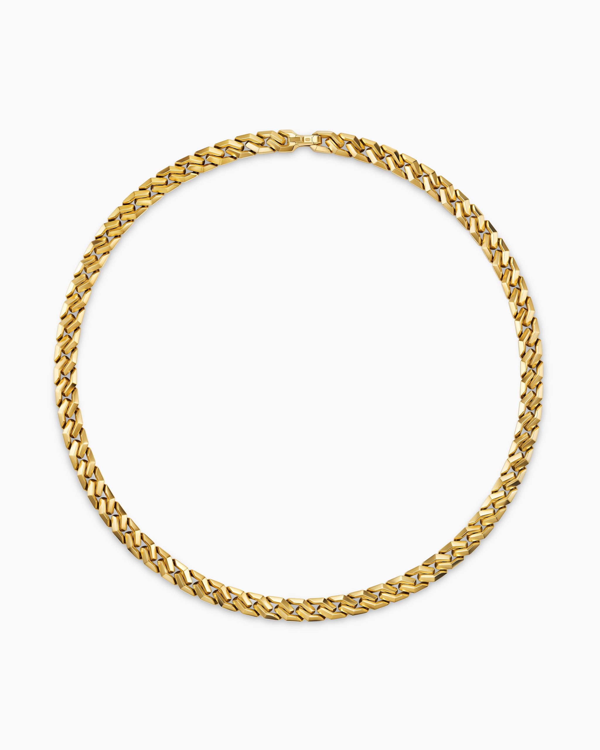 Inspired by David’s passion for horses, Curb Chain is the most elevated expression of our signature chain links. Its timeless elegance is rooted in the traditional equestrian bridle tack used to create control and stability during moments of speed. Forged precious metal is carved into Cable-like S-curves, each link crafted with impactful precision and hand-assembled with the next, culminating in a striking chain engineered for effortless movement.18-karat yellow goldNecklace, 8.7mmPush clasp