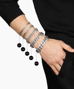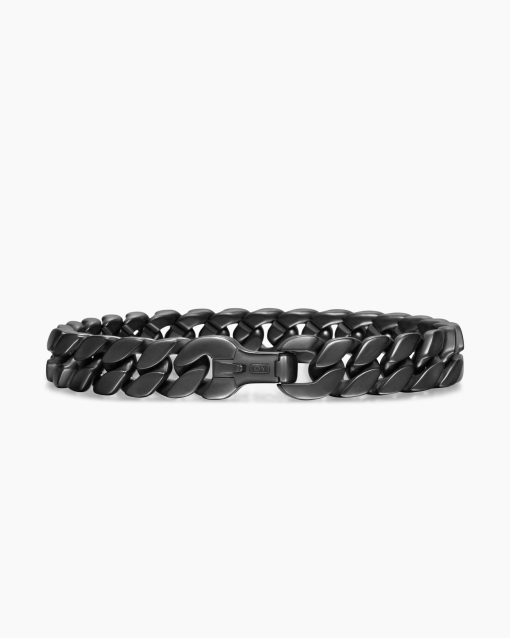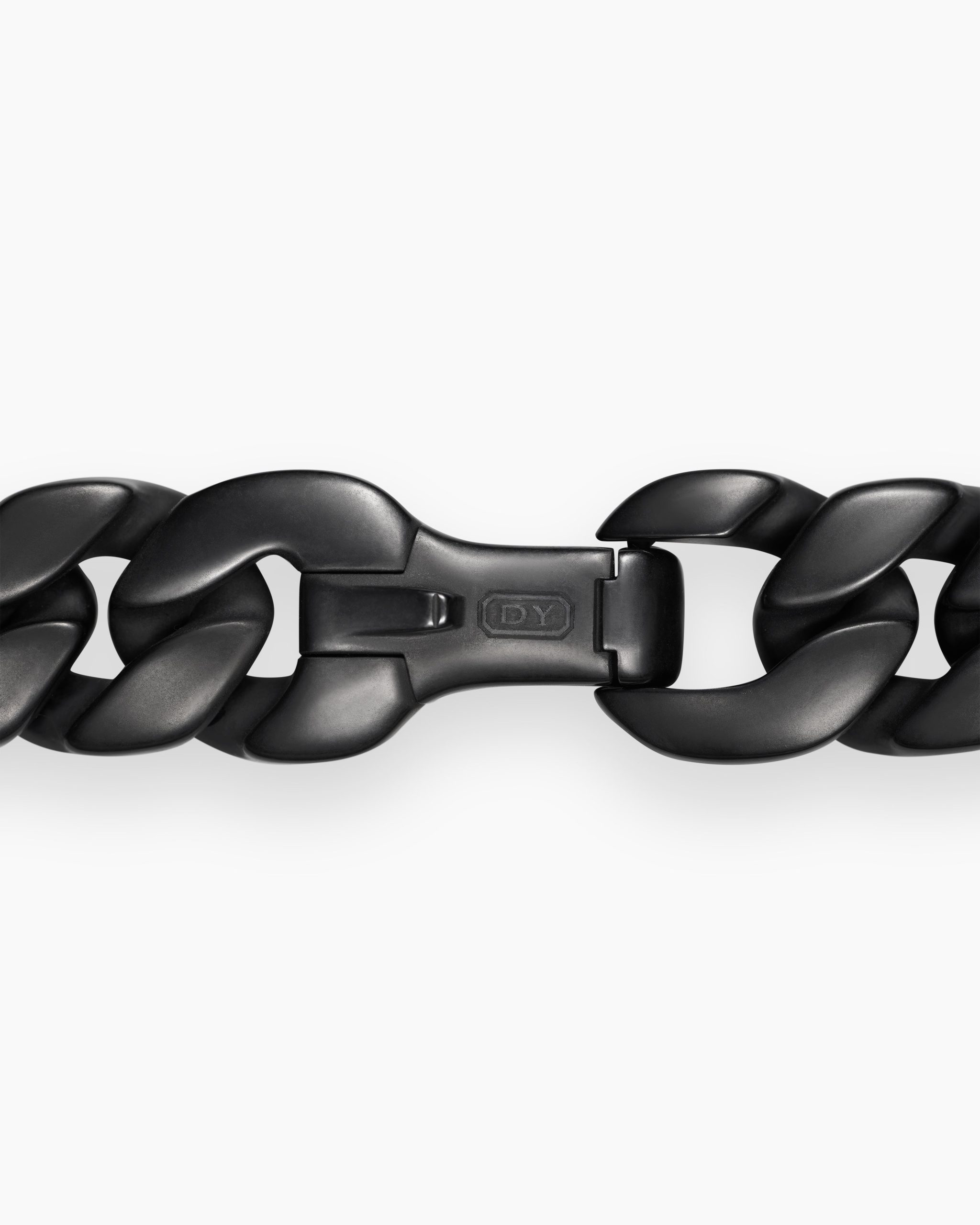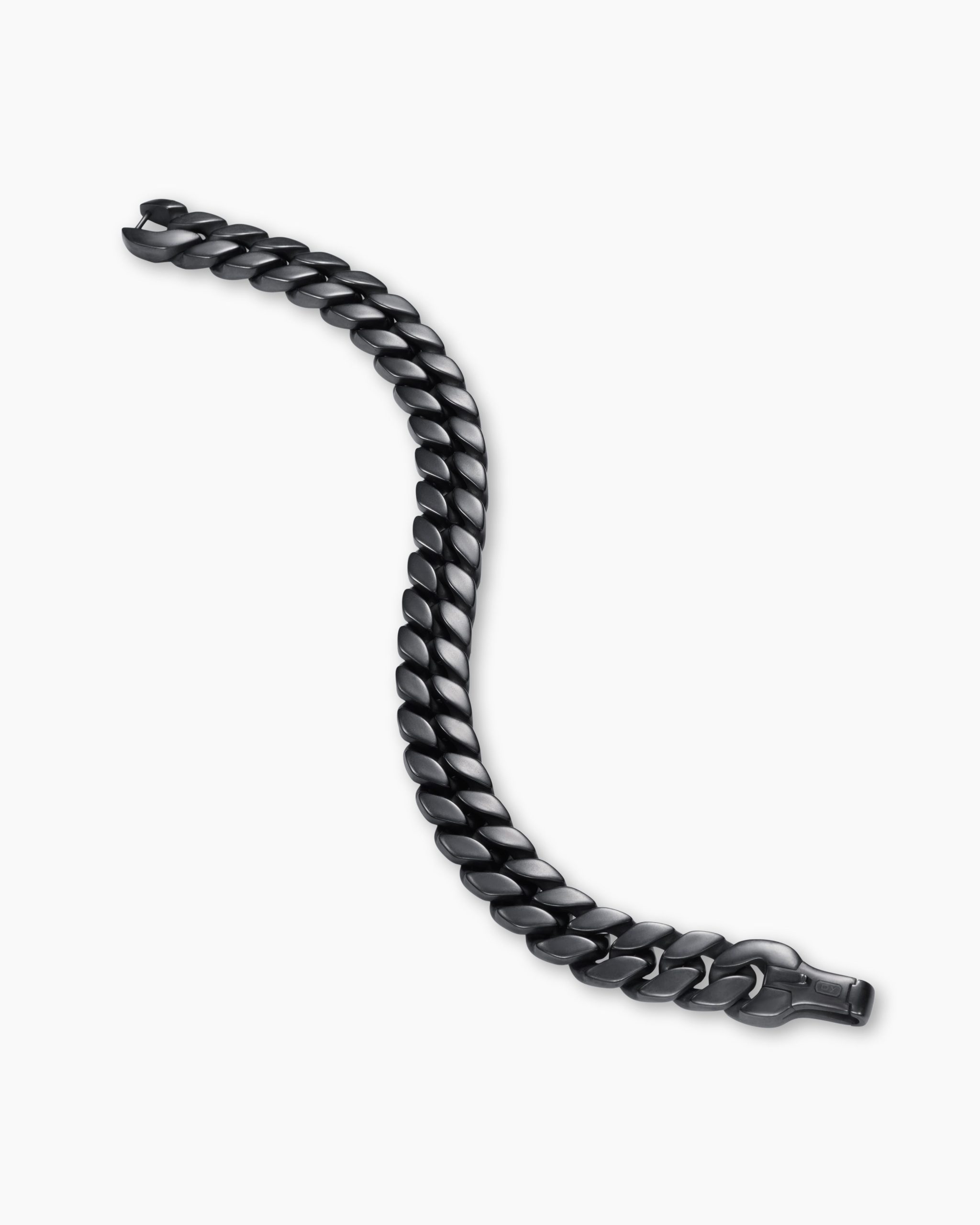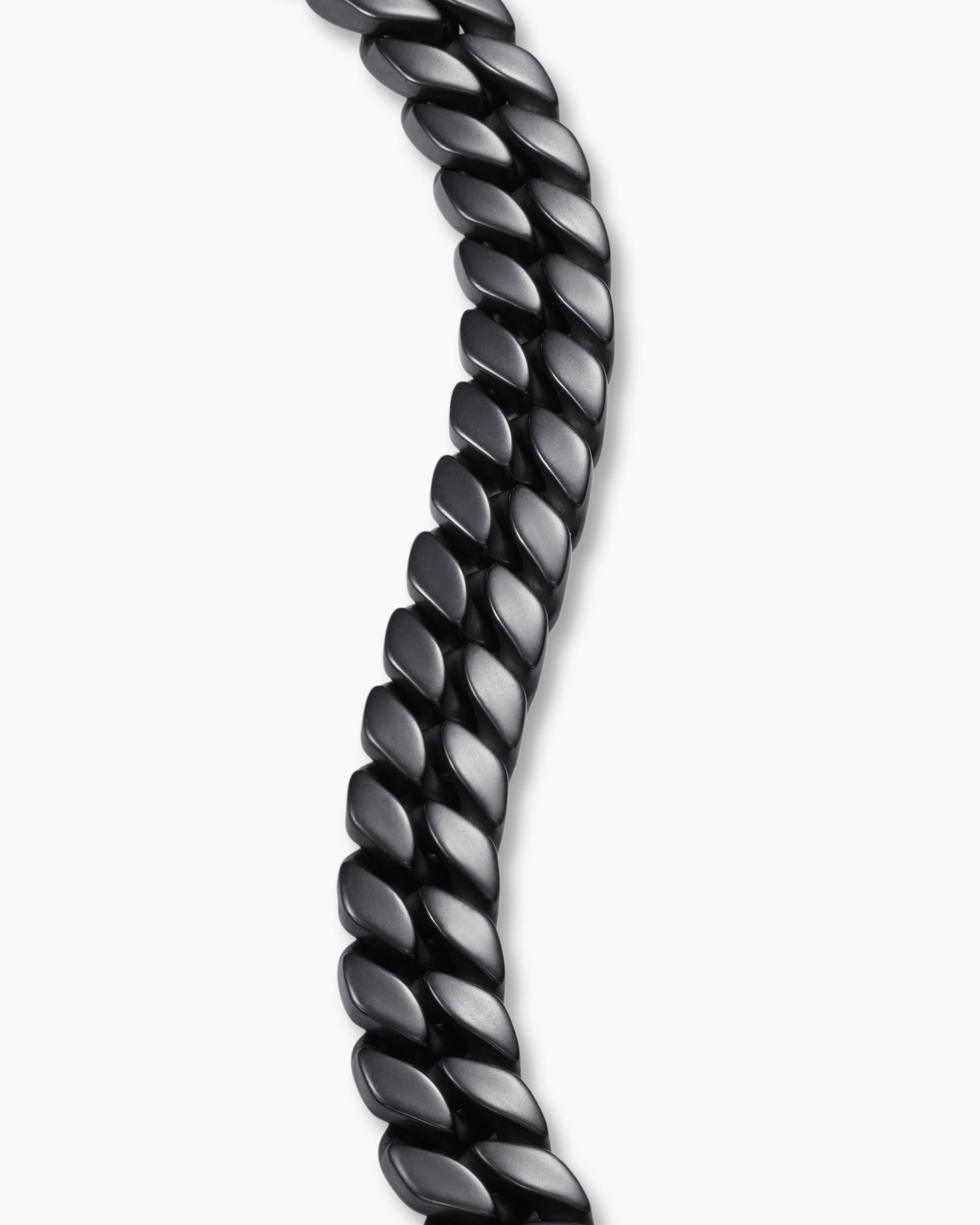 Inspired by David’s passion for horses, Curb Chain is the most elevated expression of our signature chain links. Its timeless elegance is rooted in the traditional equestrian bridle tack used to create control and stability during moments of speed. Forged precious metal is carved into Cable-like S-curves, each link crafted with impactful precision and hand-assembled with the next, culminating in a striking chain engineered for effortless movement.Black titaniumBracelet, 11.5mmPush claspThis item can be resized. Please contact customer care for more information.