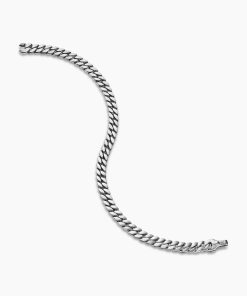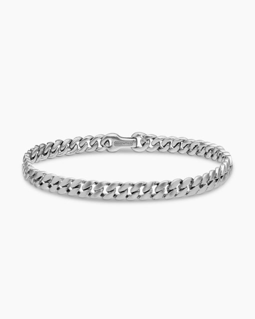 Inspired by David’s passion for horses, Curb Chain is the most elevated expression of our signature chain links. Its timeless elegance is rooted in the traditional equestrian bridle tack used to create control and stability during moments of speed. Forged precious metal is carved into Cable-like S-curves, each link crafted with impactful precision and hand-assembled with the next, culminating in a striking chain engineered for effortless movement.Sterling silverBracelet, 6mmPush clasp