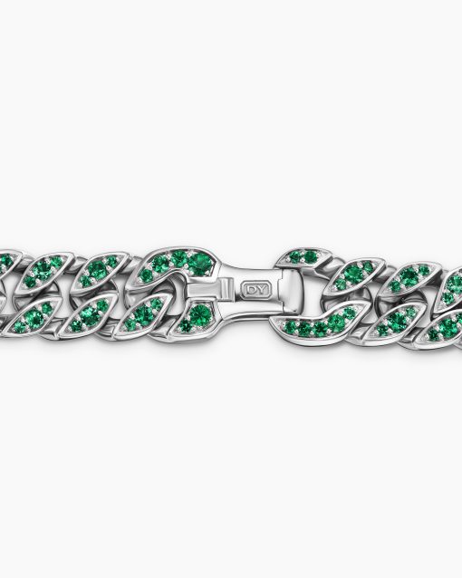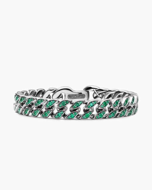 Inspired by David’s passion for horses, Curb Chain is the most elevated expression of our signature chain links. Its timeless elegance is rooted in the traditional equestrian bridle tack used to create control and stability during moments of speed. Forged precious metal is carved into Cable-like S-curves, each link crafted with impactful precision and hand-assembled with the next, culminating in a striking chain engineered for effortless movement.Inspired by Miami’s magnetic atmosphere, landscapes, and tropical sunsets, vibrant designs feature bold and semi-precious stones in electric pinks, neon greens, cobalt blues, and fiery oranges. These dynamic and radiant pieces embody the excitement and vitality of the city.Visit our Miami Design District flagship and learn more about the store’s dramatic design.18-karat white goldPavé-set emeralds, total carat weight ranges from 4.62 to 5.36 (dependent on size)Bracelet, 11.5mmPush clasp