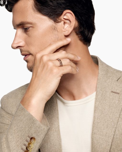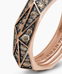 This distinctive men’s design is inspired by modern architecture. 18-karat rose goldPavé-set cognac diamonds, 1.30 total carat weightRing, 6.2mm