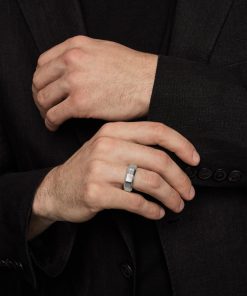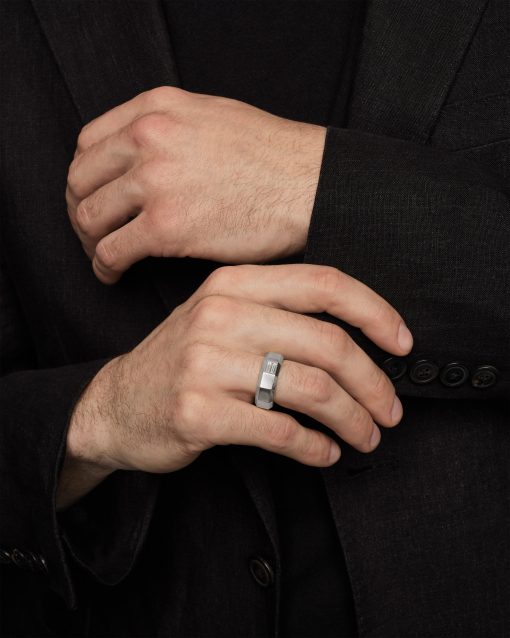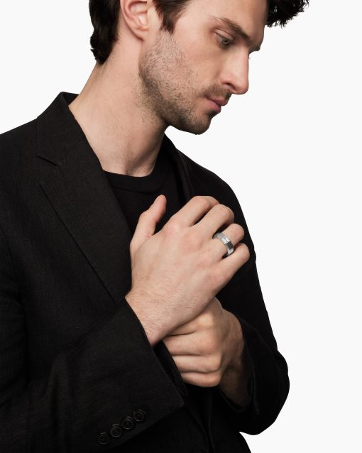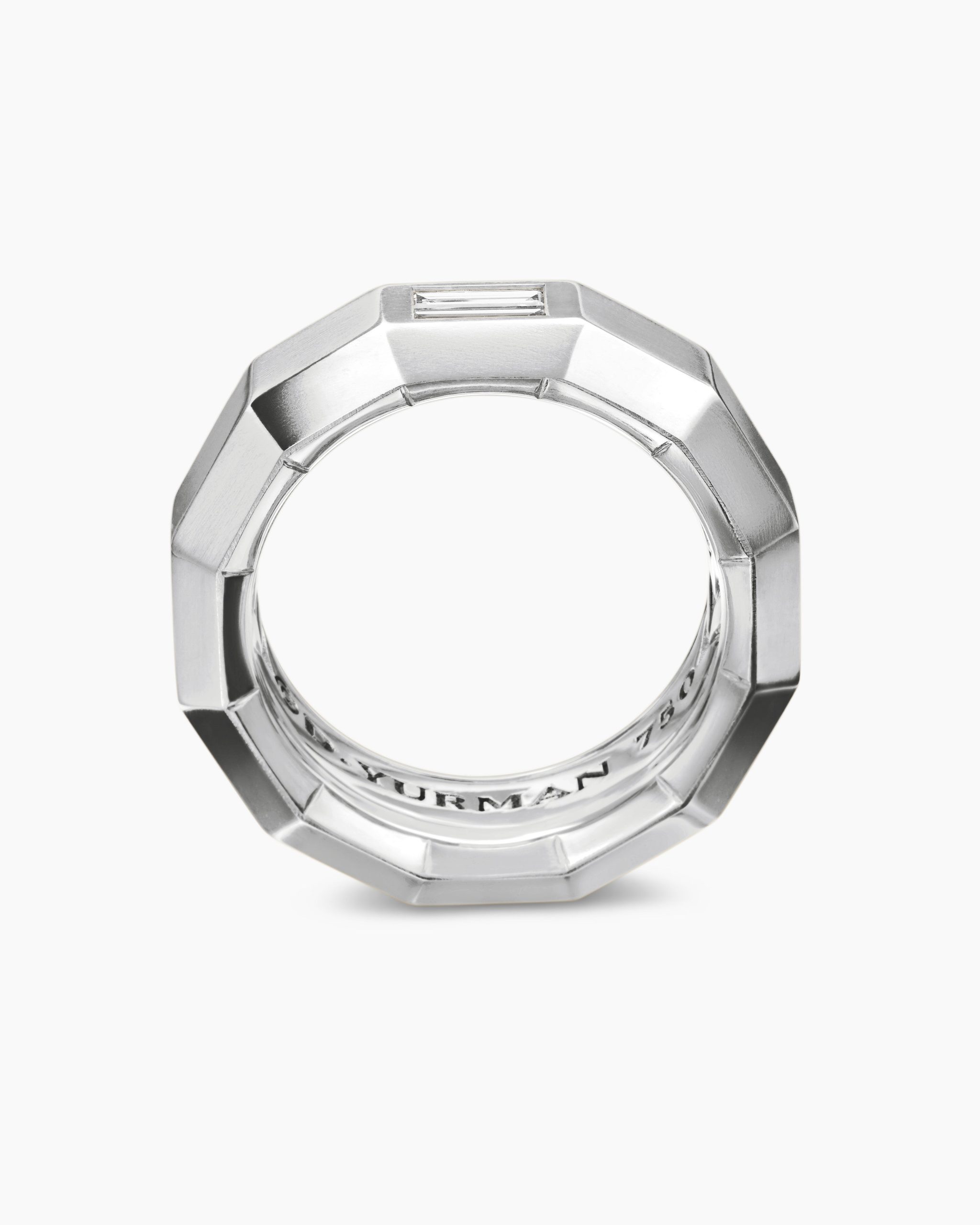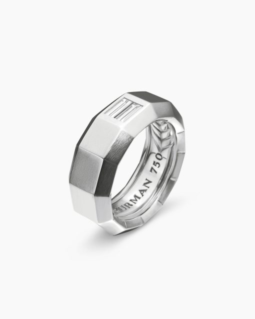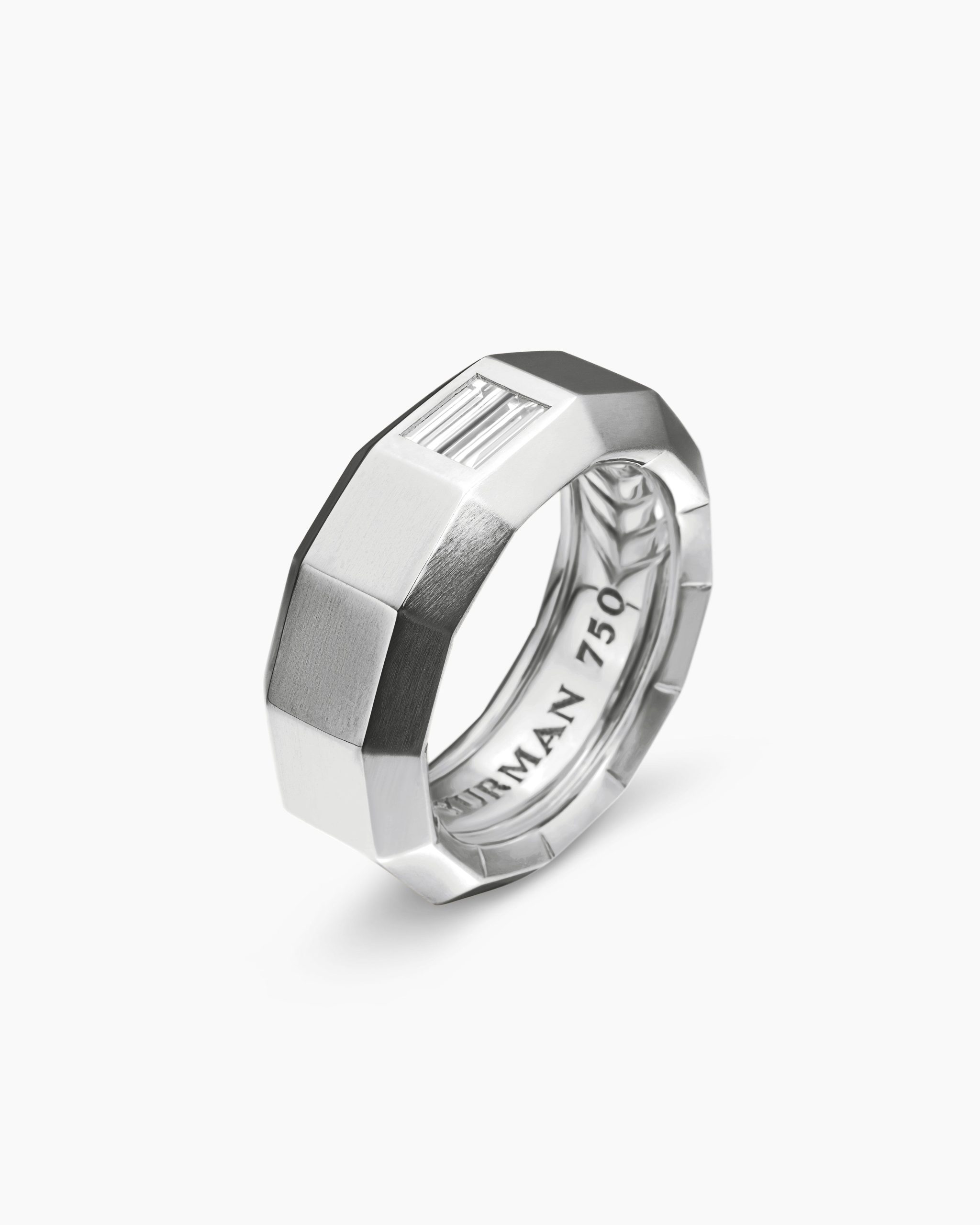 This distinctive men’s design is inspired by modern architecture. 18-karat white goldDiamond, 0.30 total carat weightRing, 8mmThis item can be engraved. Please contact customer care for more information.