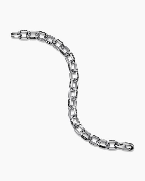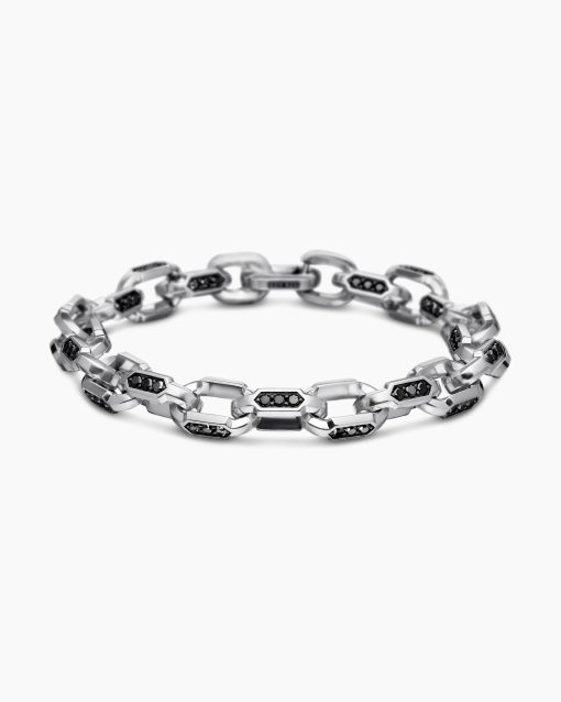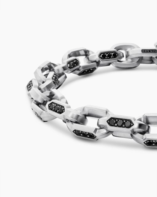 This distinctive men’s design is inspired by modern architecture. Sterling silverPavé-set black diamonds, total carat weight ranges from 3.42 to 4.23 (dependent on size)Bracelet, 9.5mmPush claspThis item can be engraved. Please contact customer care for more information.