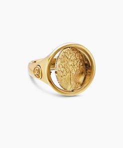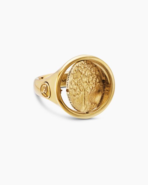 Opposing forces create harmony and balance. Duality explores the nature of opposites through symbolism: hand-carved medallions flip from one side to the other, revealing contrary elemental forces. 18-karat yellow goldRing, 20mmThis ring is interchangeable and can be worn 2 different ways. Coin can rotate so ring can be worn with either side of the coin facing up.