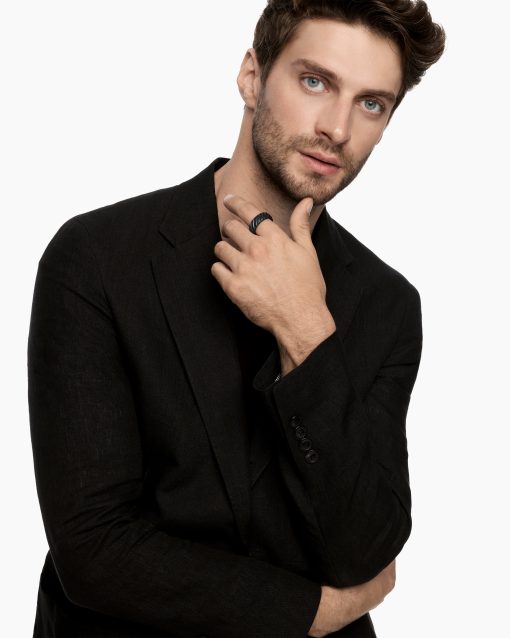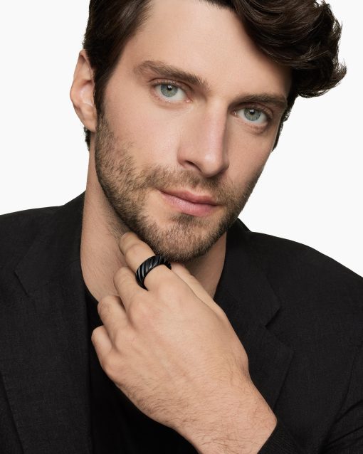 David Yurman’s artistic signature, Cable began as a bracelet that he hand-twisted from 50 feet of wire. For the past 30 years, he has evolved the twisted helix into a myriad of designs. Black titaniumRing, 9mm
