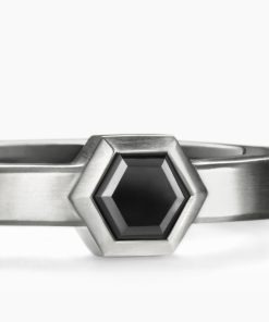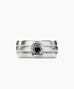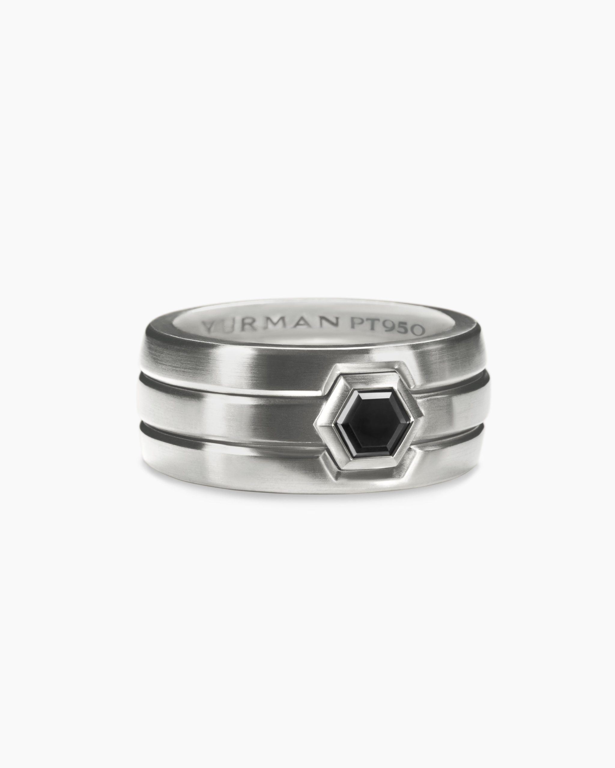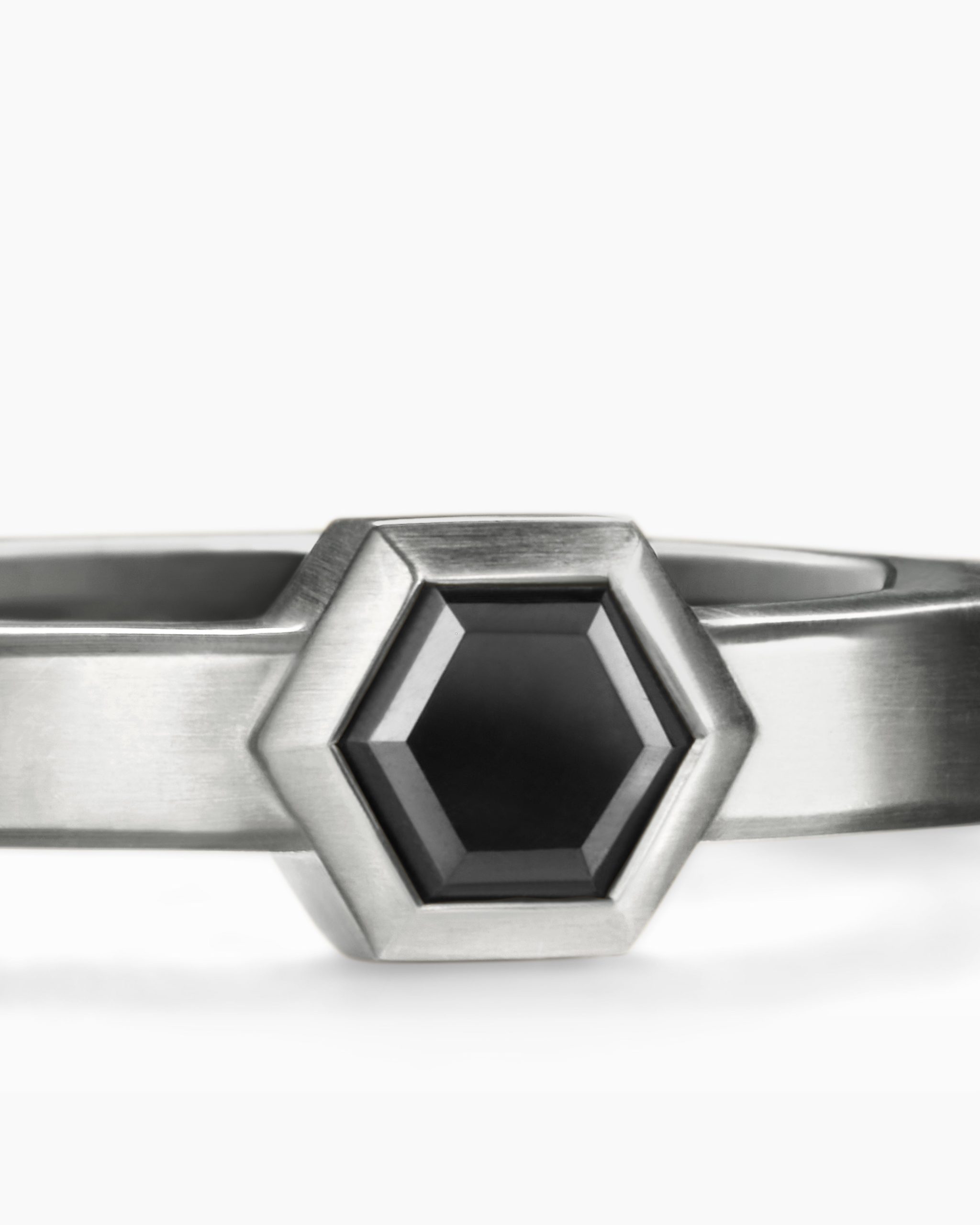 Drawing on six-sided patterns in nature, this collection applies the hexagon’s geometric efficiency to innovative jewelry designs. Each creation blends rubber and precious metal through engineered, technologic precision. PlatinumPavé-set black diamonds, 0.63 total carat weightRing, 10mmThis item can be resized. Please contact customer care for more information.This item can be engraved. Please contact customer care for more information.