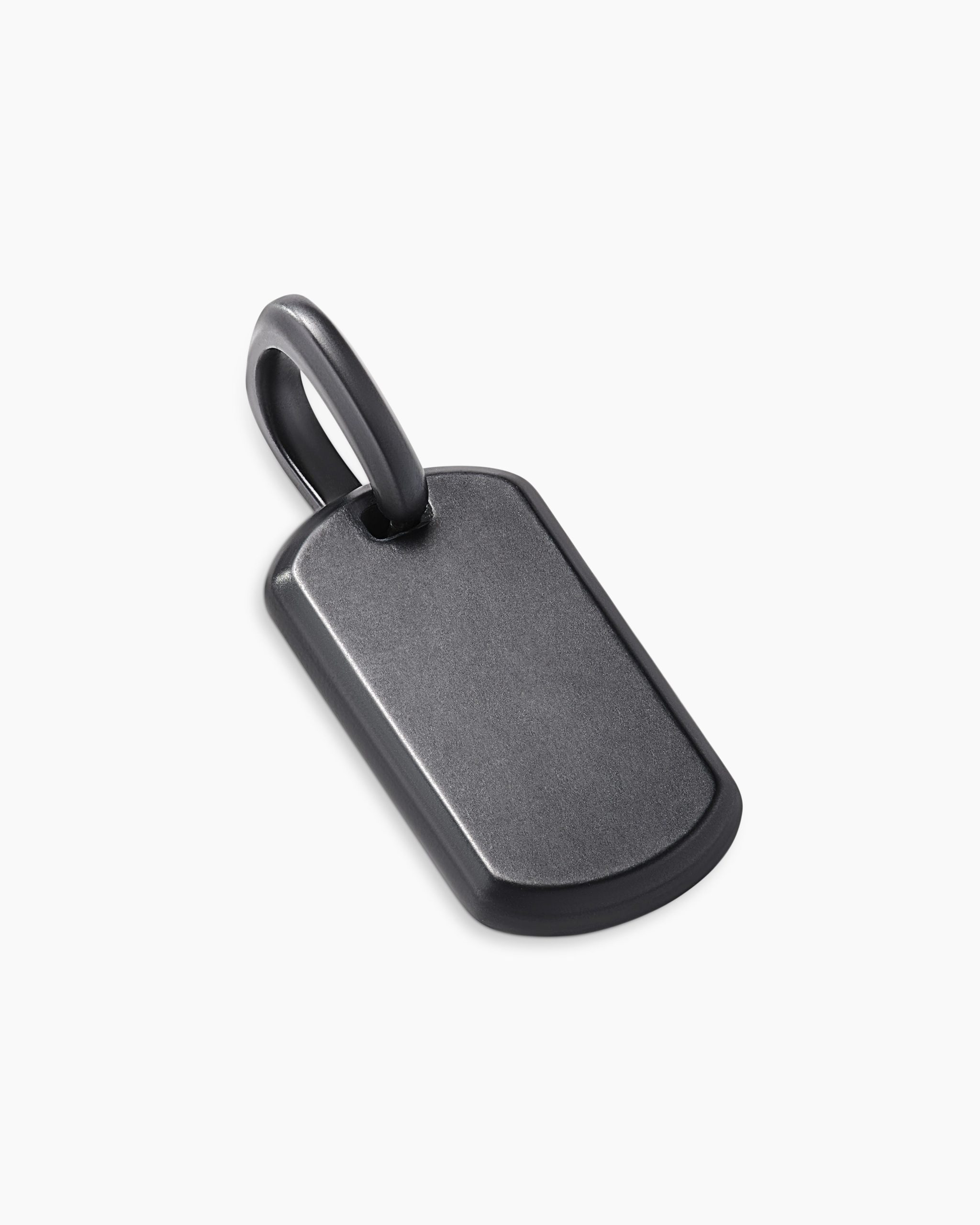 David Yurman skillfully reinterprets chevron—the ancient V-shaped pattern used in architecture and art—in this modern, sculptural collection. Viewed in relation to one another, each half of the motif is a mirror image of Cable. Black titaniumTag, 21 x 11.1mmPlease note: tag only; chain sold separately