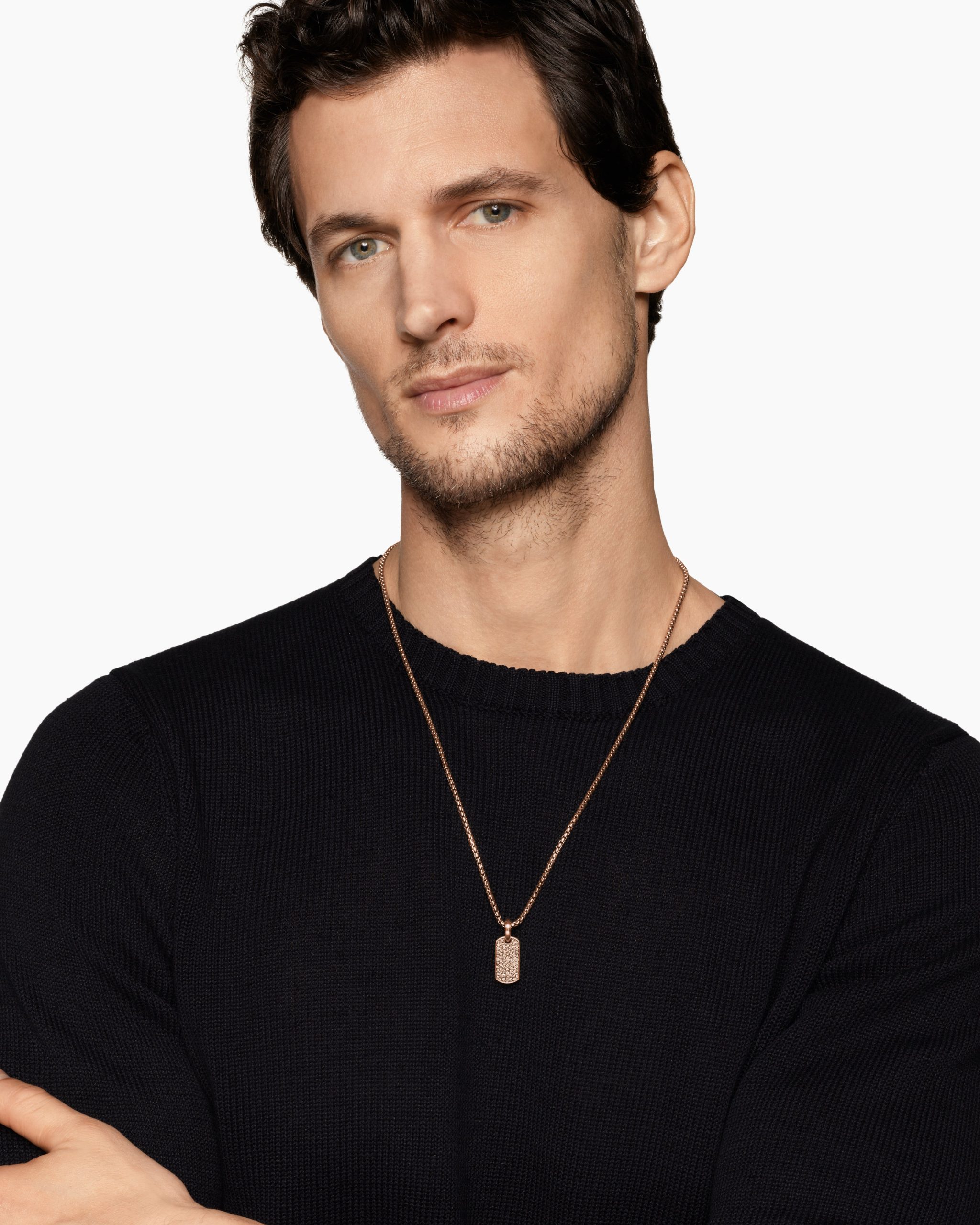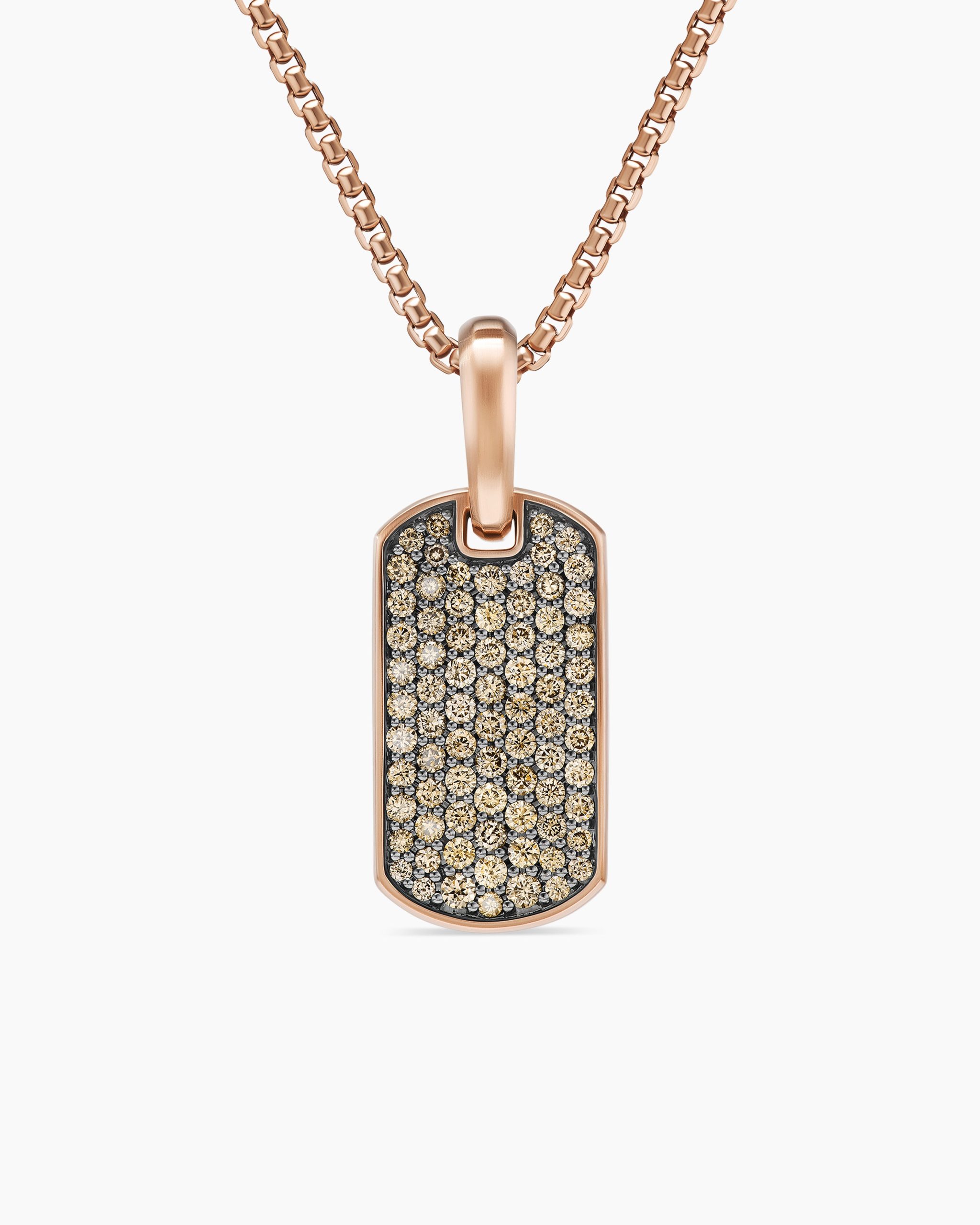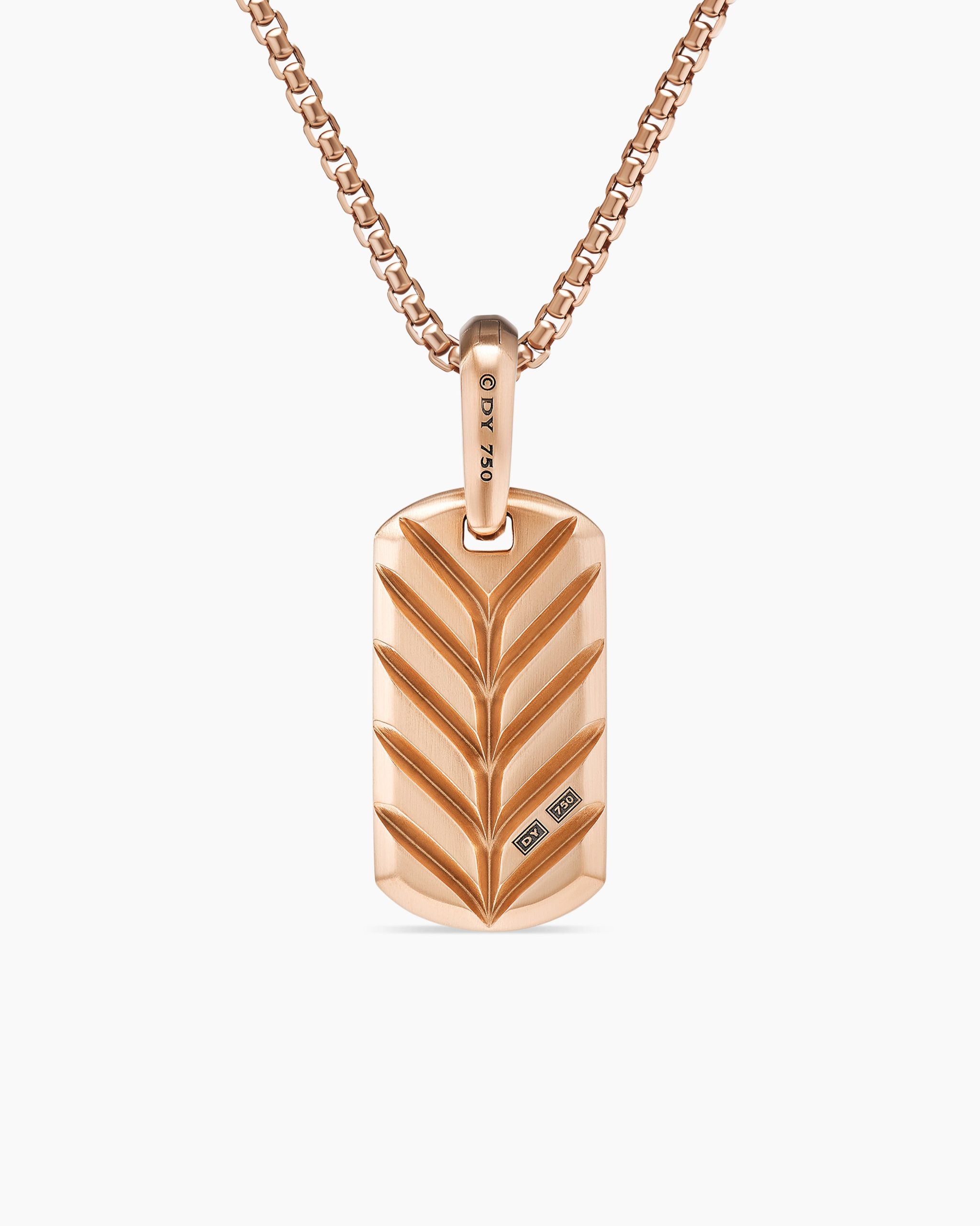 David Yurman skillfully reinterprets chevron—the ancient V-shaped pattern used in architecture and art—in this modern, sculptural collection. Viewed in relation to one another, each half of the motif is a mirror image of Cable. 18-karat rose goldPavé-set cognac diamonds, 0.87 total carat weightTag, 21 x 11.1mmPlease note: tag only; chain sold separately