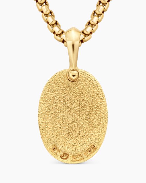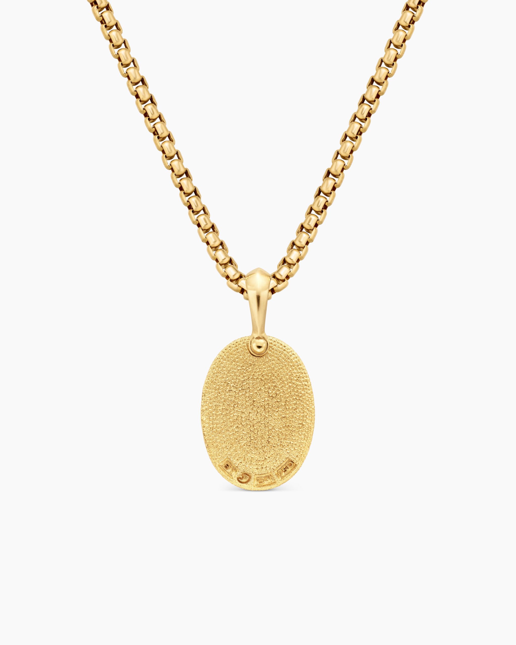 The past and present converge in Petrvs®, which is inspired by ancient coins and stone carvings. Many designs reflect classical intaglios with intricate motifs that express gentlemanly qualities. 18-karat yellow goldAmulet, 29 x 16.7mmPlease note: amulet only; chain sold separatelyShown with: Box Chain