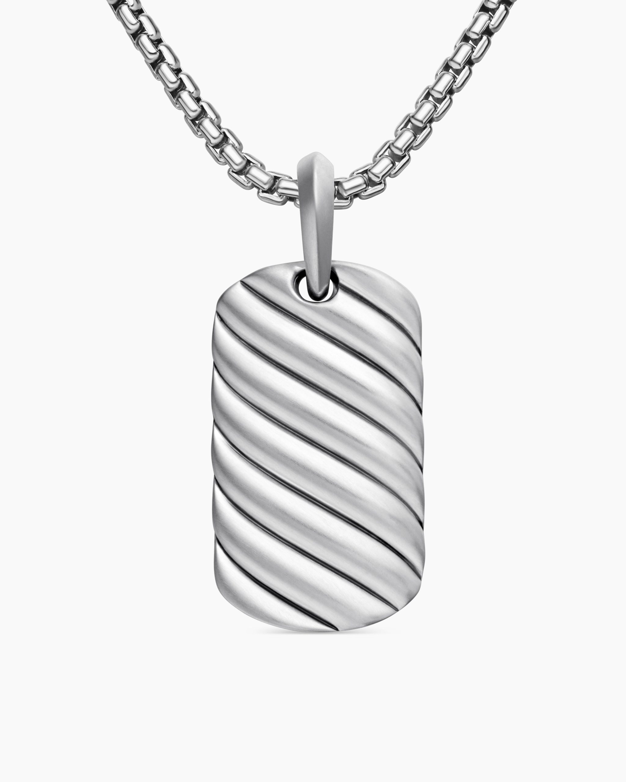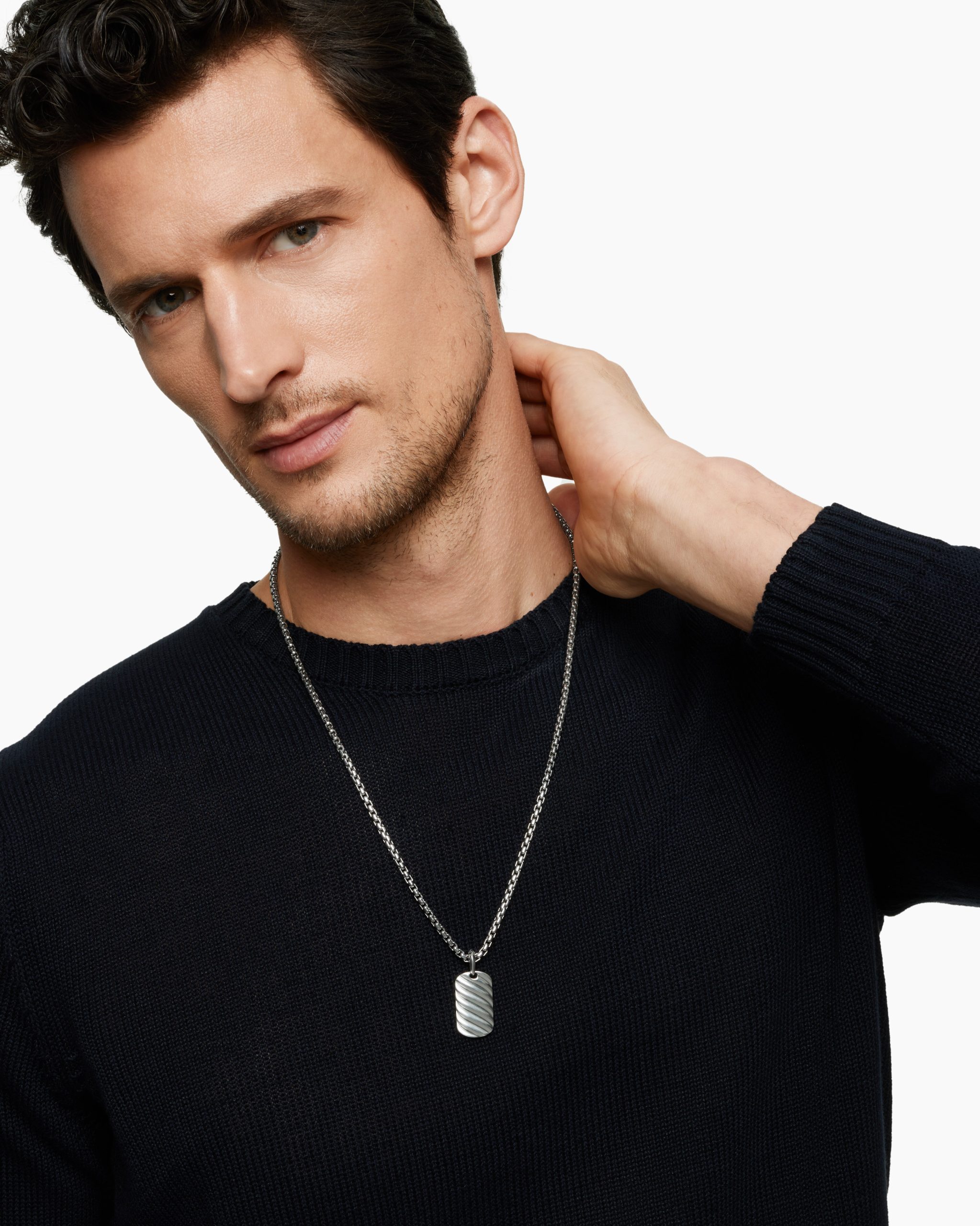 In Sculpted Cable, David Yurman transforms his signature design motif into a carved form. The effect is an entrancing wavelike pattern that retains the dimensional look of Cable’s original helix. Sterling silverTag, 27 x 15.7mmPlease note: tag only; chain sold separatelyShown with: Box Chain