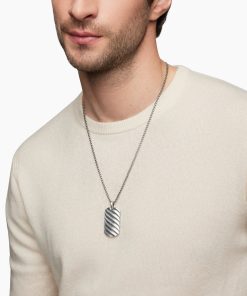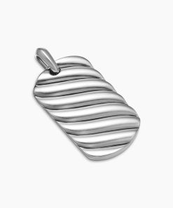 In Sculpted Cable, David Yurman transforms his signature design motif into a carved form. The effect is an entrancing wavelike pattern that retains the dimensional look of Cable’s original helix. Sterling silverTag, 42 x 24.4mmPlease note: tag only; chain sold separatelyShown with: Box Chain