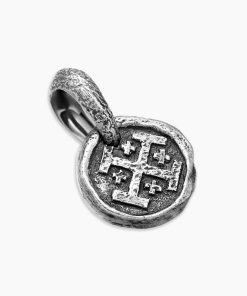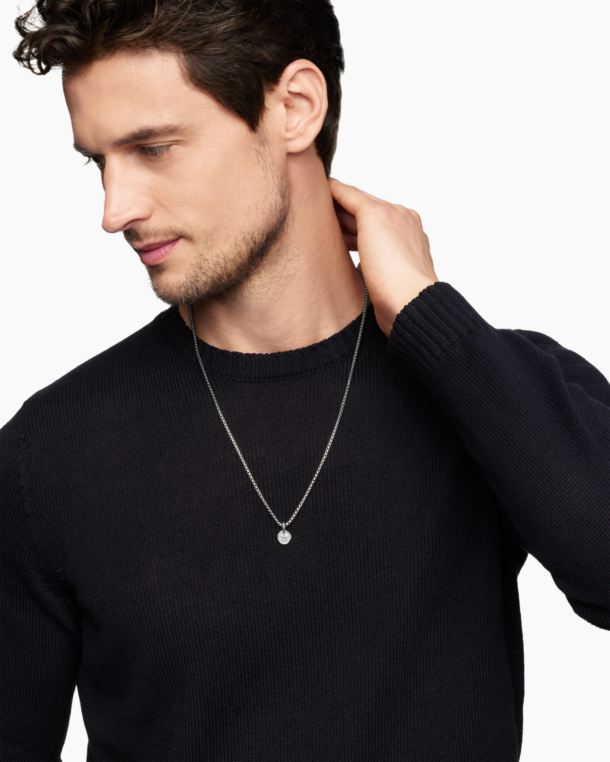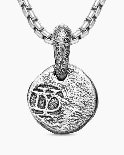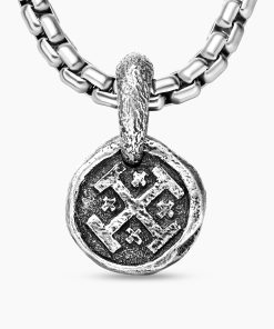 Once linked to spirituality and magic, today’s amulets are expressions of personal style. This collection reflects the modern man’s distinct identities with religious symbols, ancient charms and utilitarian motifs crafted from precious metals and gemstones. Sterling silverAmulet, 16.8 x 10.6mmPlease note: amulet only; chain sold separatelyShown with: Box Chain