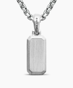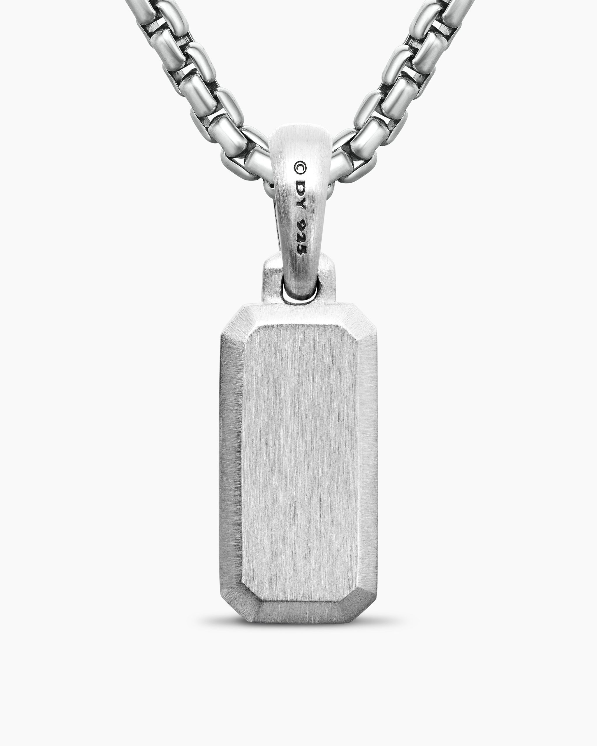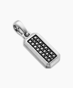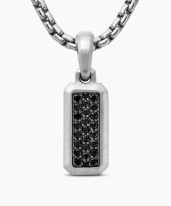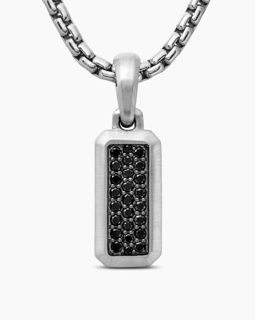 Inspired by clean lines and smooth metal surfaces, these minimalist designs are sculpted with engineered precision. Every pavé diamond or colored gemstone is carefully matched for color and hand set—a tribute to DY artistry. Sterling silverPavé black diamonds, 0.32 total carat weightAmulet, 17 x 8.5mmPlease note: amulet only; chain sold separatelyShown with: Box Chain