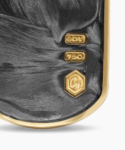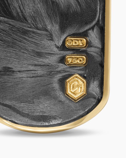 Inspired by clean lines and smooth metal surfaces, these minimalist designs are sculpted with engineered precision.18-karat yellow gold Forged carbonTag, 21.2 x 11.6mmTotal length, 28.5mm