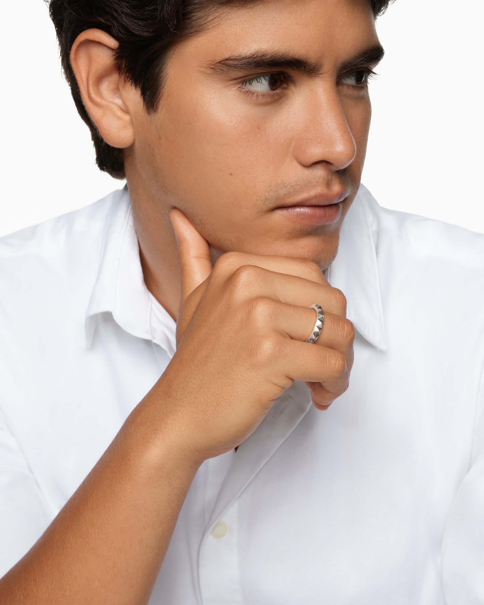 This design references the pyramid—an enduring form that connects us to our ancient roots in art, architecture and design.Sterling silverRing, 4mmThis item can be engraved. Please contact customer care for more information.