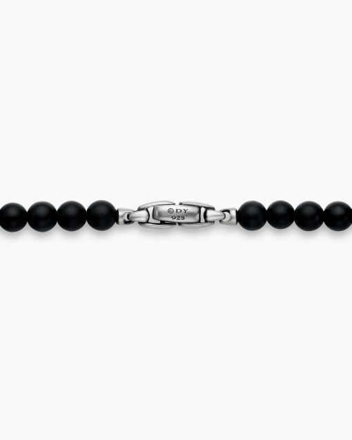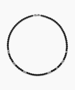 Rooted in spiritual significance, these modern beaded jewelry designs are symbolic of your inner spirit and authenticity. They are meant to be collected, layered, and worn continuously as you move through life’s journey. Expertly crafted, they feature a variety of smoothly polished, semi-precious, and rare gemstones, such as quartz, black onyx and tiger’s eye.Sterling silverBlack onyxPavé-set diamonds, 6.28 total carat weightNecklace, 6mmPush clasp