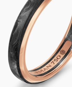 Inspired by clean lines and smooth metal surfaces, these minimalist designs are sculpted with engineered precision.Forged carbon is a lightweight yet strong composite originally used in aeronautics and sports cars. For jewelry, David Yurman pioneered a technique which fuses the modern material and precious metal into innovative, graphic designs.Inspired by clean lines and smooth metal surfaces, these minimalist designs are sculpted with engineered precision.18-karat rose goldForged carbonRing, 4mmThis item can be engraved. Please contact customer care for more information.