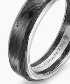 Inspired by clean lines and smooth metal surfaces, these minimalist designs are sculpted with engineered precision.Forged carbon is a lightweight yet strong composite originally used in aeronautics and sports cars. For jewelry, David Yurman pioneered a technique which fuses the modern material and precious metal into innovative, graphic designs.18-karat white goldForged carbonRing, 6mmThis item can be engraved. Please contact customer care for more information.
