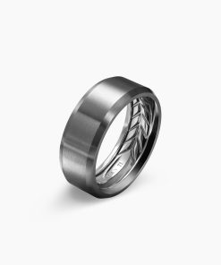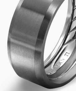 This hand-finished piece is inspired by beveled edges. Grey titaniumRing, 8.5mmThis item can be engraved. Please contact customer care for more information.