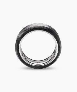 This hand-finished piece is inspired by beveled edges. Sterling silverForged carbonRing, 8.5mmThis item can be engraved. Please contact customer care for more information.