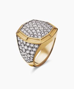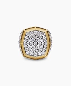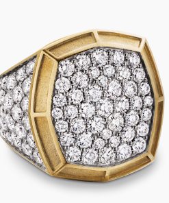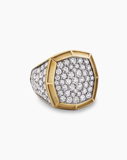 Inspired by clean lines and smooth metal surfaces, these minimalist designs are sculpted with engineered precision. Every pavé diamond or colored gemstone is carefully matched for color and hand set—a tribute to DY artistry. 18-karat yellow goldPavé diamonds, 4.74 total carat weightRing, 23mmThis item can be resized. Please contact customer care for more information.This item can be engraved. Please contact customer care for more information.