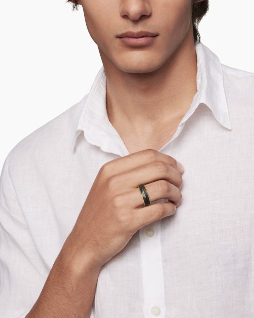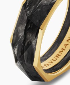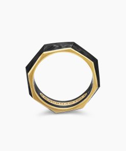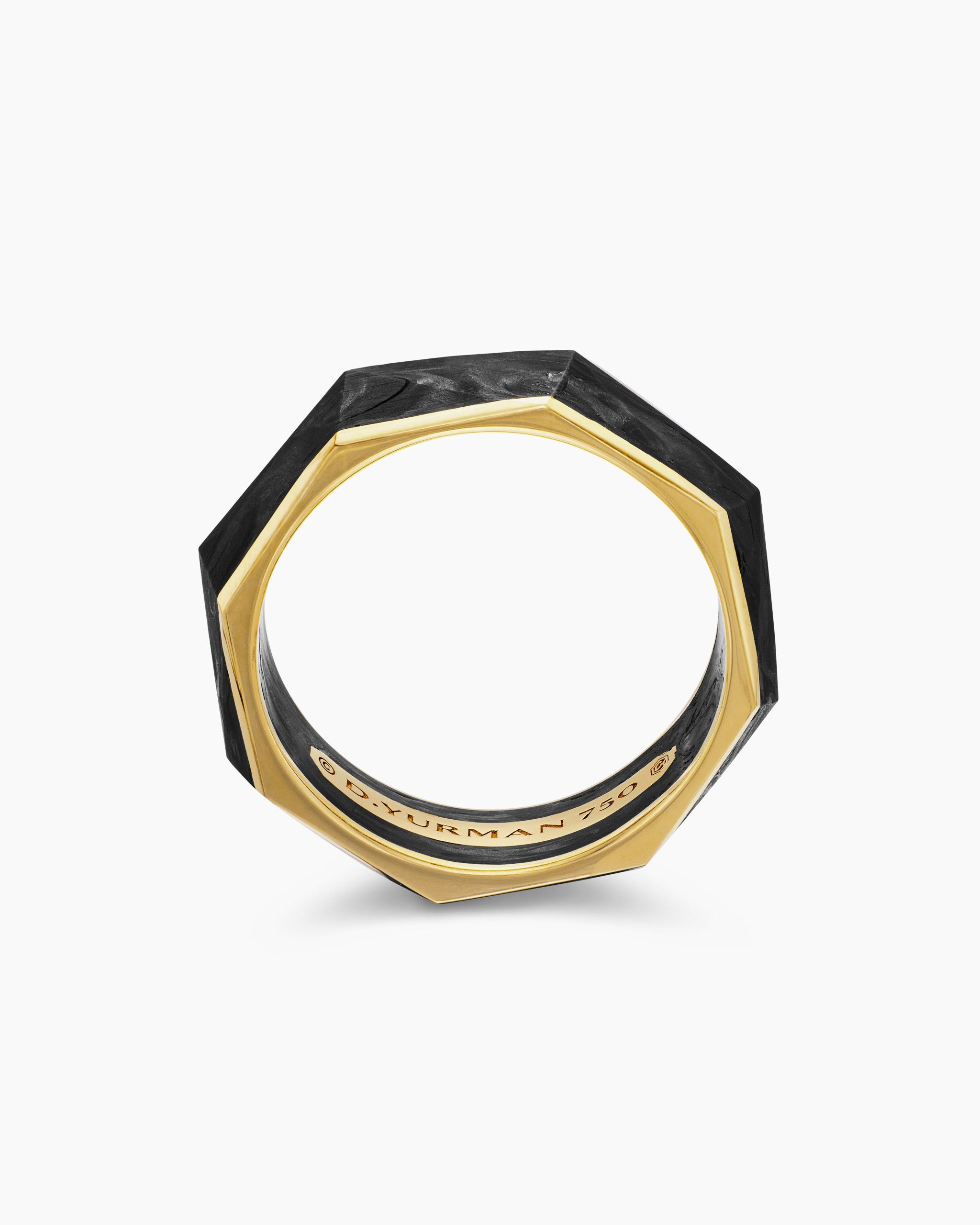 This distinctive men’s design is inspired by modern architecture. 18-karat yellow goldForged carbonRing, 8mmThis item can be engraved. Please contact customer care for more information.