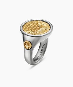 Opposing forces create harmony and balance. Duality explores the nature of opposites through symbolism: hand-carved medallions flip from one side to the other, revealing contrary elemental forces. Sterling silver with 18-karat yellow goldRing, 20mmThis ring is interchangeable and can be worn 2 different ways. Coin can rotate so ring can be worn with either side of the coin facing up.