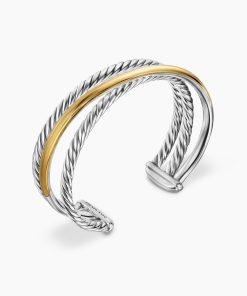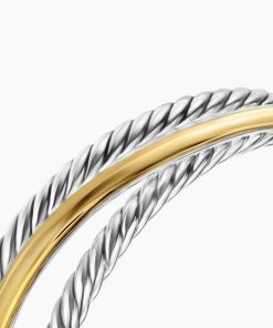 The DY Crossover® Collection explores the rhythmic weaving of line to create form and movement. Using a dynamic range of smooth and cabled cords, the individual strands are meticulously entwined.Sterling silver with 14-karat yellow goldBracelet, 19mmHinge opening