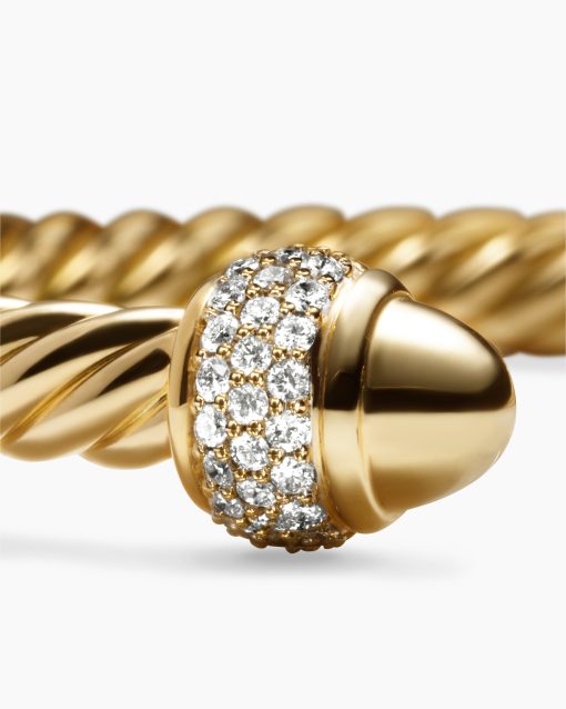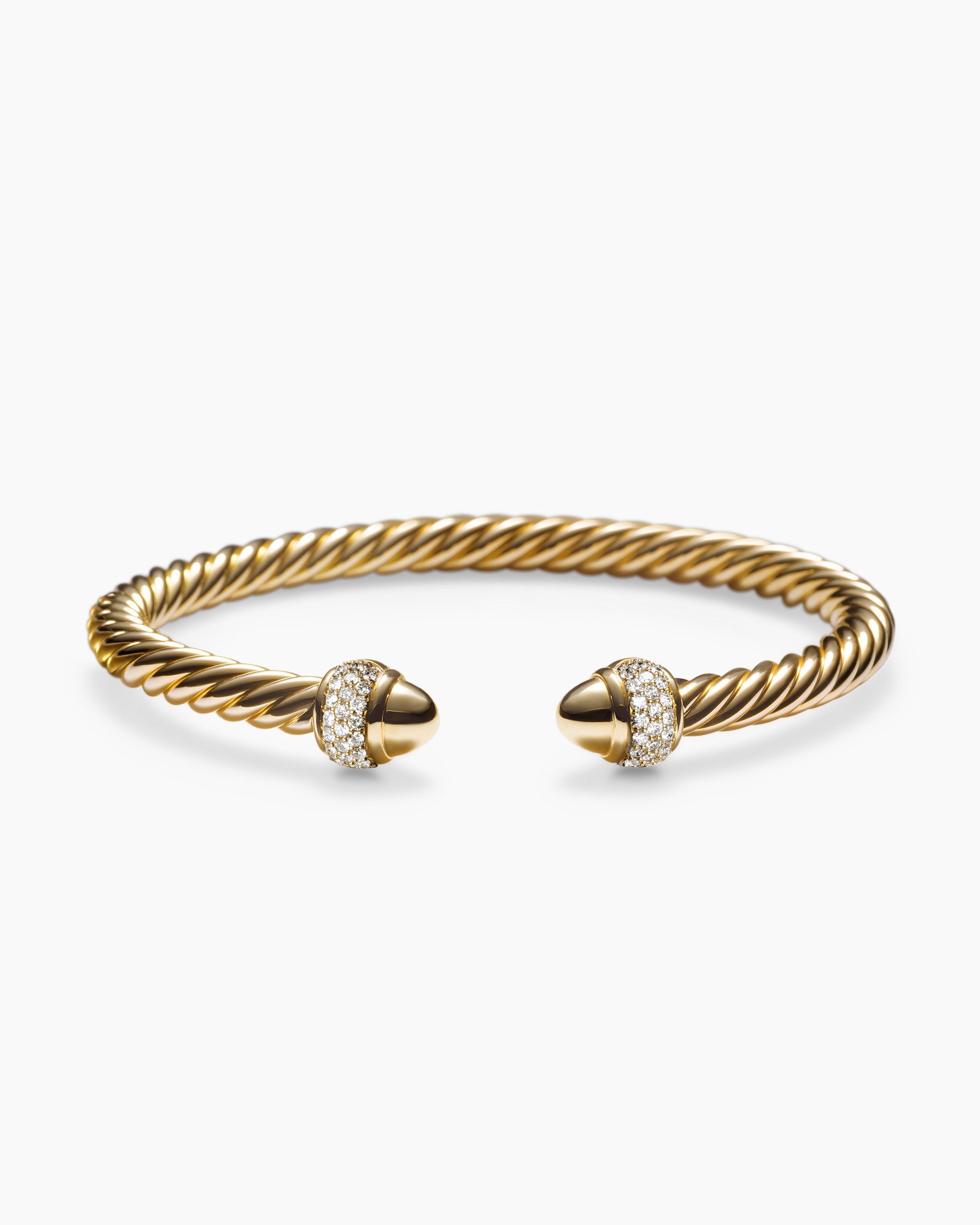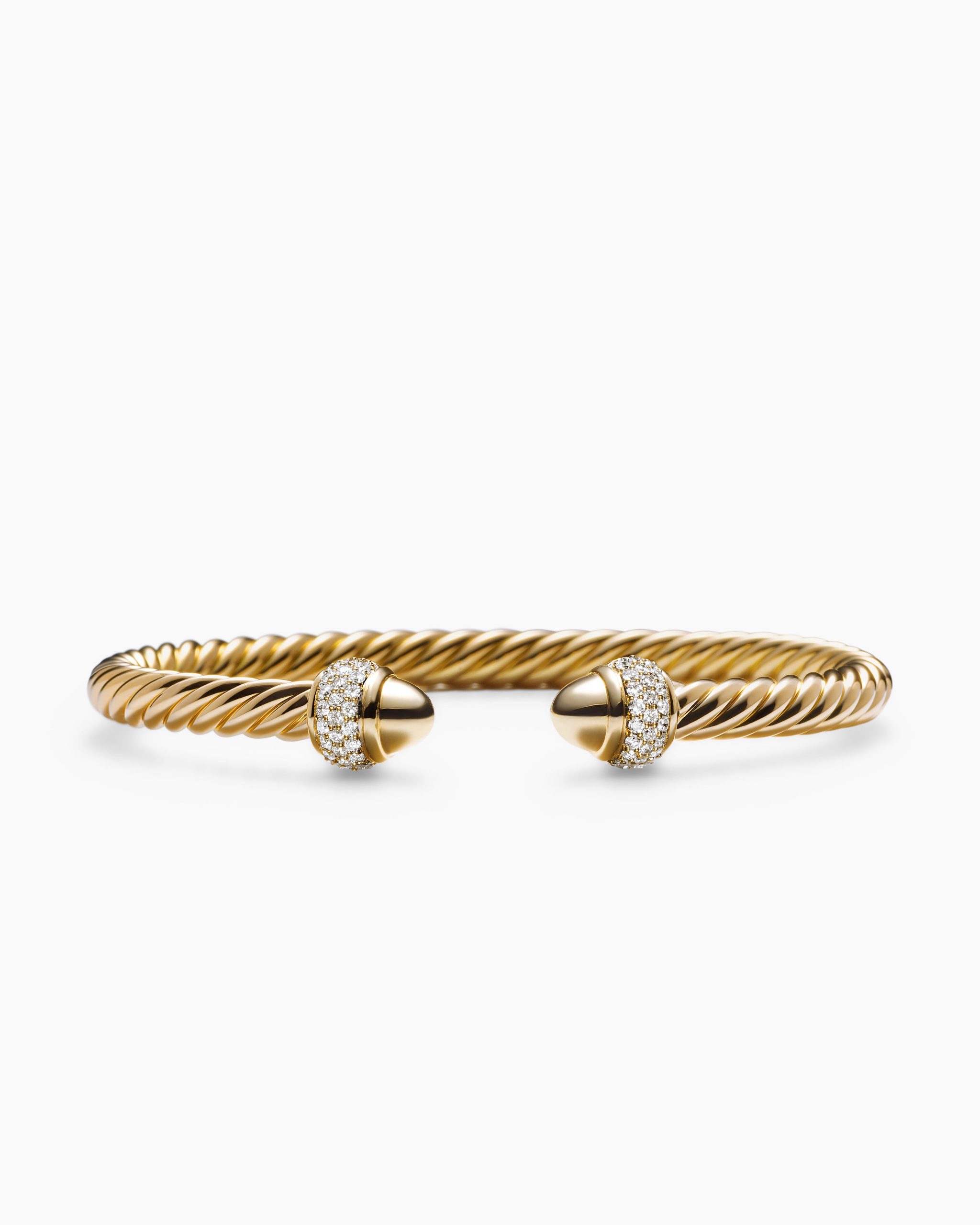 David Yurman’s artistic signature, Cable began as a bracelet that he hand-twisted from 50 feet of wire. For the past 30 years, he has evolved the twisted helix into a myriad of designs. 18-karat yellow goldPavé-set diamonds, 0.34 total carat weightBracelet, 5mmThis item can be engraved. Please contact customer care for more information.