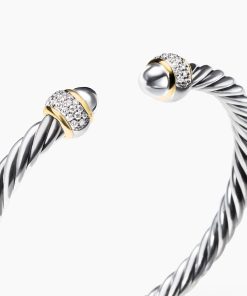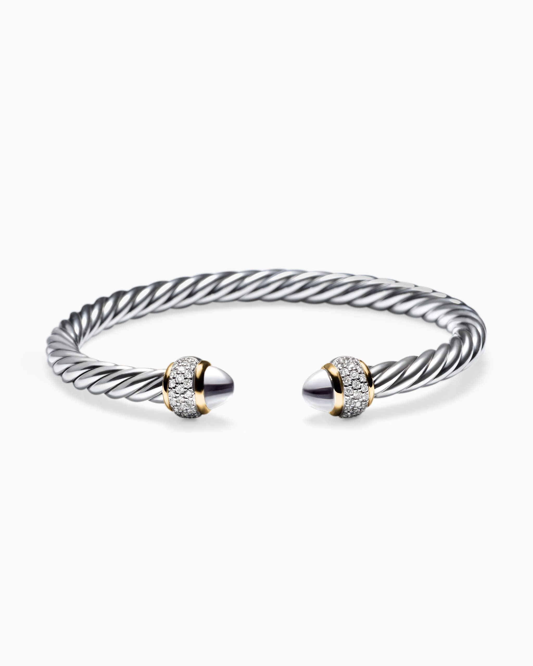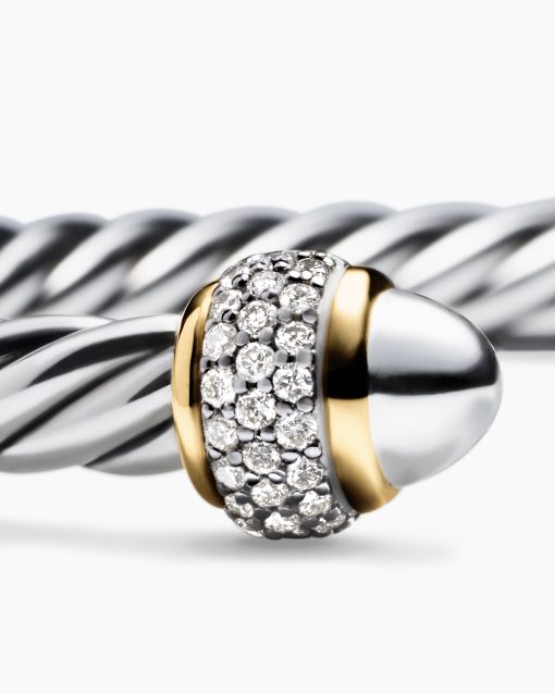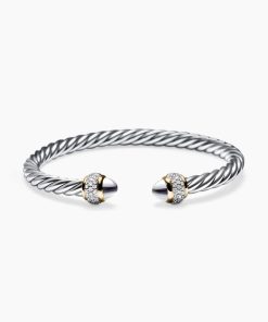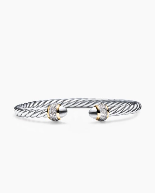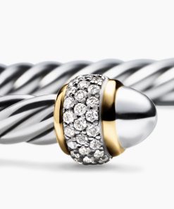 David Yurman’s artistic signature, Cable began as a bracelet that he hand-twisted from 50 feet of wire. For the past 30 years, he has evolved the twisted helix into a myriad of designs. Sterling silver with 18-karat yellow goldSterling silver domesPavé-set diamonds, 0.34 total carat weightBracelet, 5mmThis item can be engraved. Please contact customer care for more information.