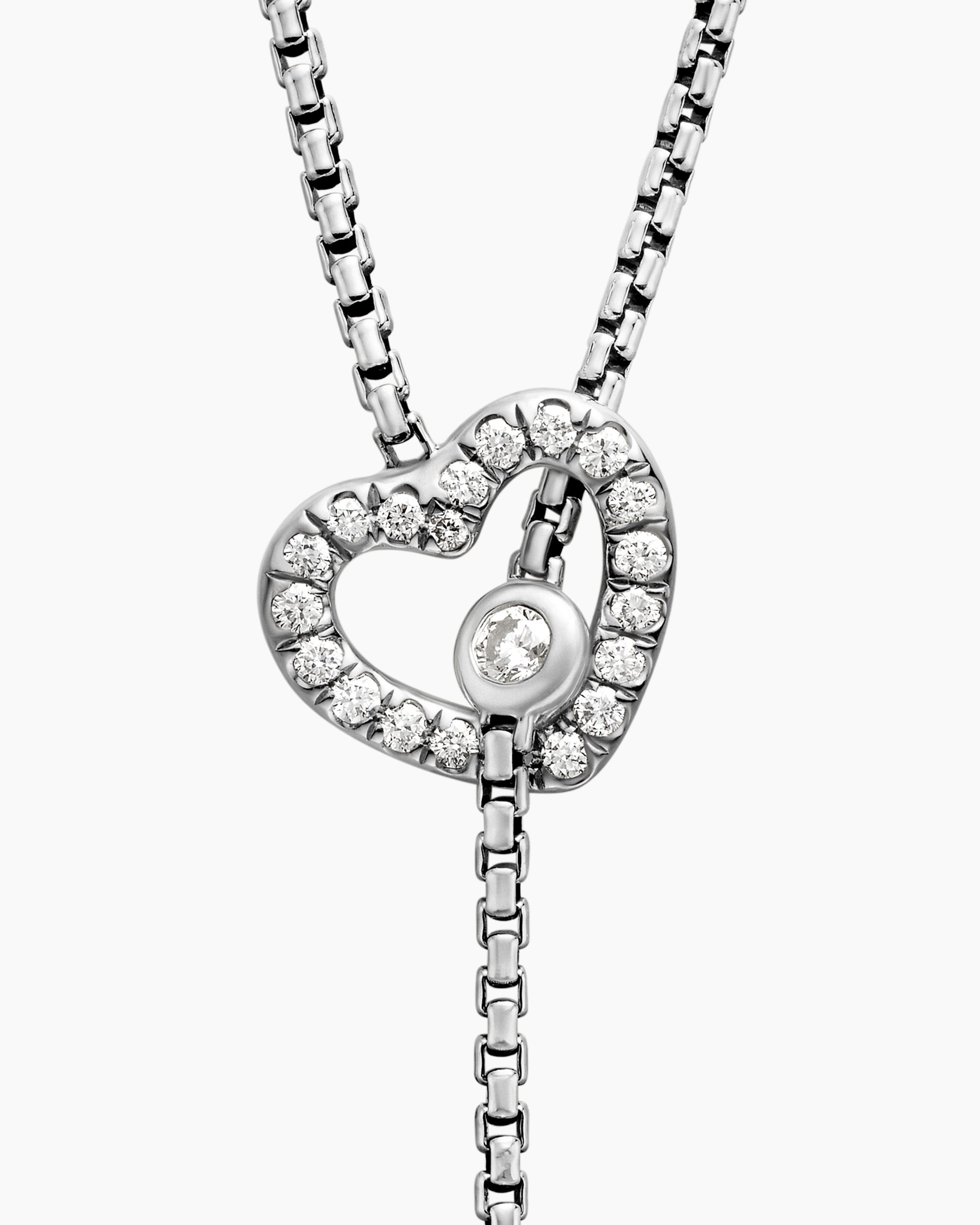 David Yurman’s iconic Cable motif beautifully adorns a universal symbol or shape, creating a modern talisman meant to be collected, combined and treasured. Sterling silverPavé diamonds, 0.28 total carat weightAdjustable length, 16-17inHearts, 11.2 x 11.2mmChain, 1.5mmLobster clasp