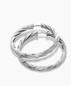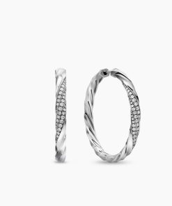 David Yurman Women’s Cable Edge® Hoop Earrings | Diamond
