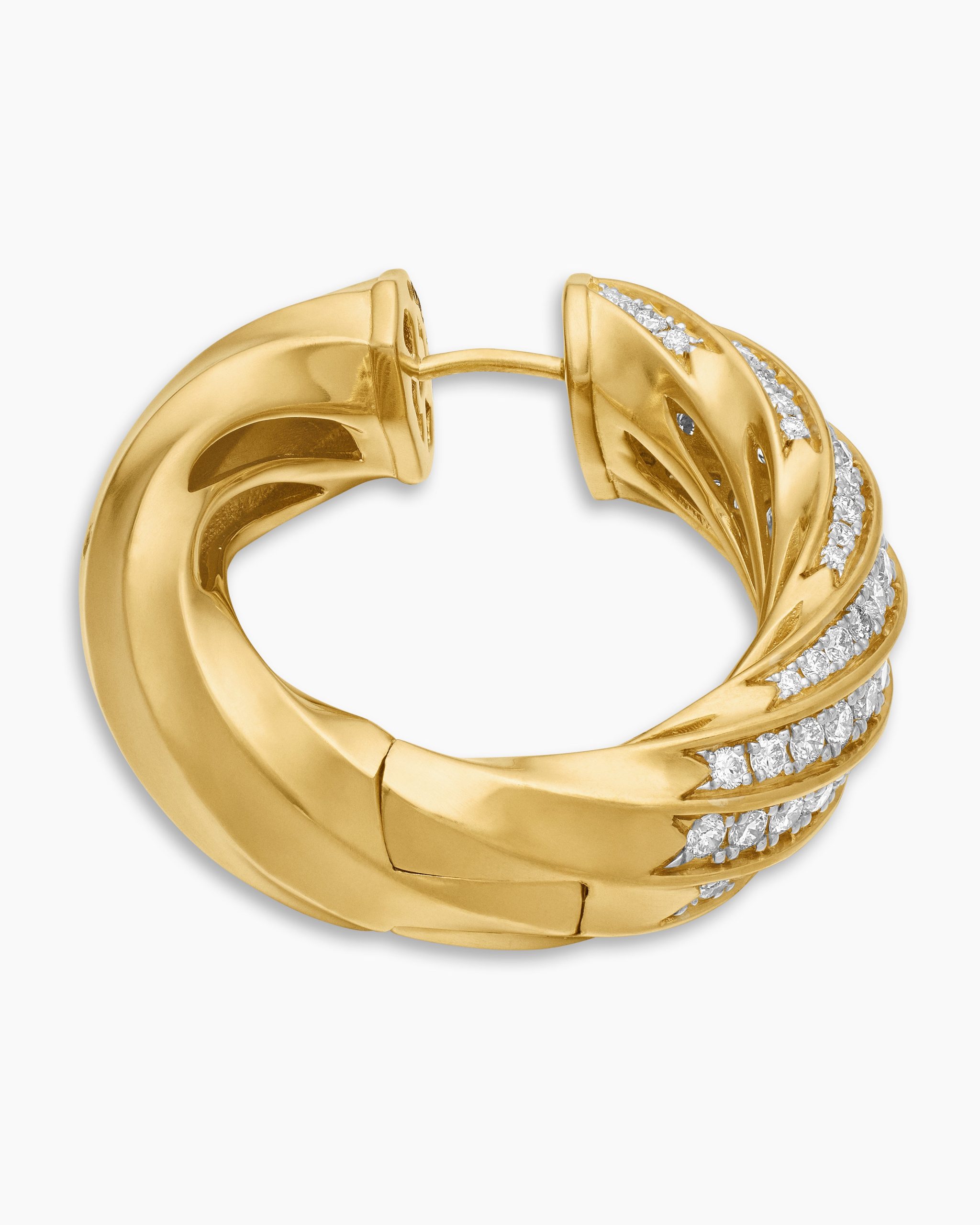This design is a contemporary vision of Cable, with angles, edges and facets reminiscent of modern architecture. The Cable Edge® collection is made from the finest reclaimed—not freshly mined—18K gold and sterling silver. These precious metals are carefully re-cast by master artisans to conserve them, and to reduce our environmental imprint. 18-karat yellow goldPavé diamonds, 2.98 total carat weightEarrings, 28.9mmThis item can be engraved. Please contact customer care for more information.