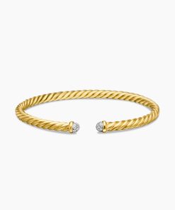 David Yurman’s artistic signature, Cable began as a bracelet that he hand-twisted from 50 feet of wire. For the past 30 years, he has evolved the twisted helix into a myriad of designs. Cablespira® unites artistry and innovation with our exclusive, highly flexible. construction. 18-karat yellow goldPavé diamonds, 0.19 total carat weightBracelet, 4mmCablespira® is a patented DY construction that is highly flexible and exceptionally comfortable to wear.
