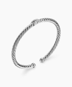 One of David Yurman’s most iconic designs, the X Collection was inspired by his wife Sybil’s painting of the ancient mark. Classic yet contemporary, the collection epitomizes his approach to design.Sterling silverPavé-set diamonds, 0.11 total carat weightBracelet, 4mmNitinol core to provide flex movement.