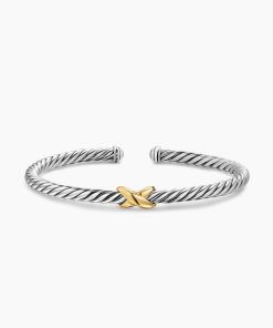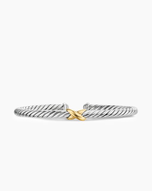 One of David Yurman’s most iconic designs, the X Collection was inspired by his wife Sybil’s painting of the ancient mark. Classic yet contemporary, the collection epitomizes his approach to design.Sterling silver and 14-karat bonded yellow goldBracelet, 4mmNitinol core to provide flex movement.