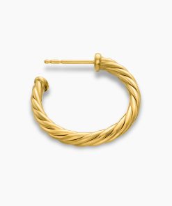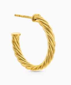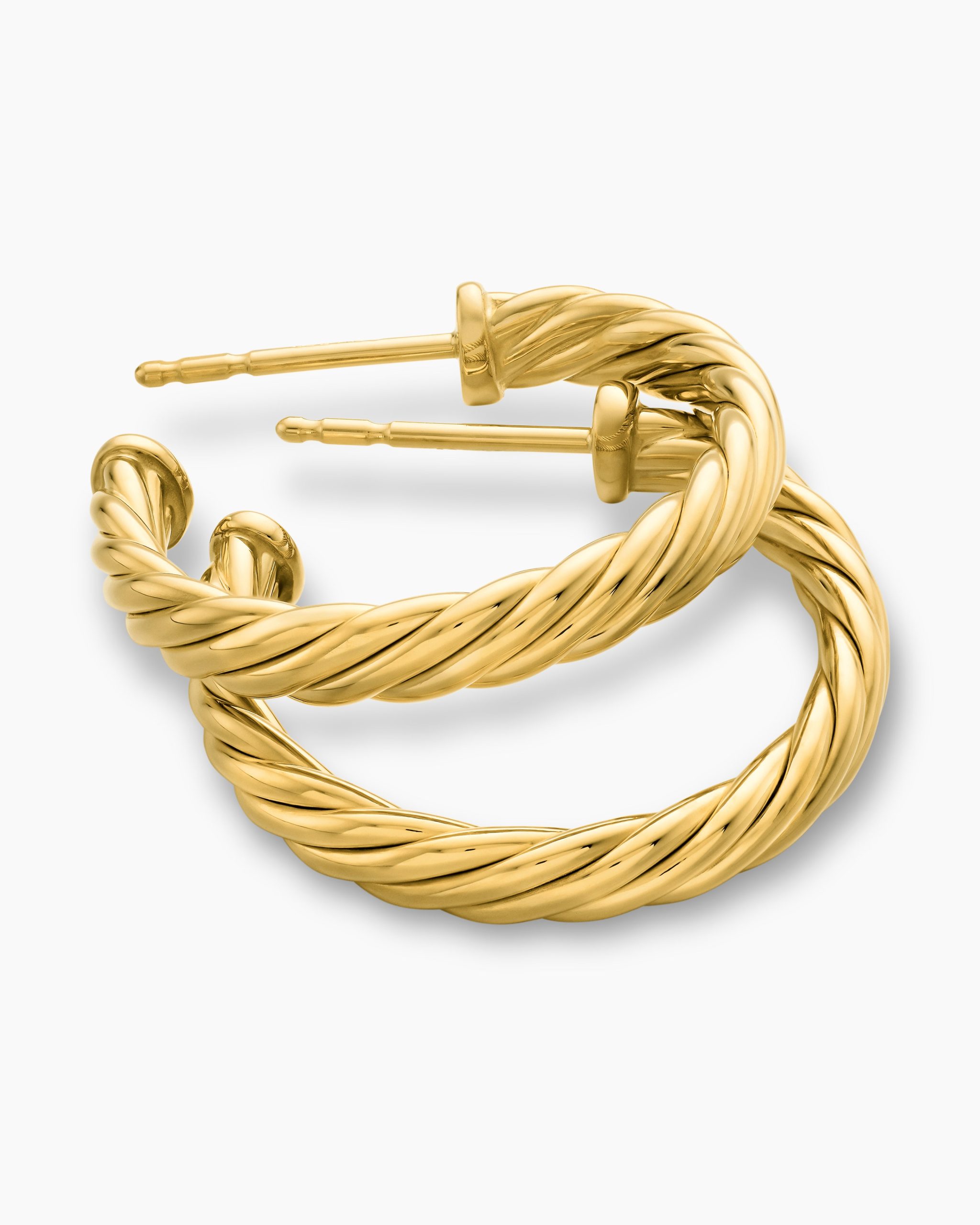 In Sculpted Cable, David Yurman transforms his signature design motif into a carved form. The effect is an entrancing wavelike pattern that retains the dimensional look of Cable’s original helix. 18-karat yellow goldEarring diameter, 3/4inCablespira® is a patented DY construction that is highly flexible and exceptionally comfortable to wear.