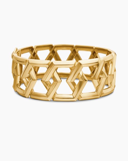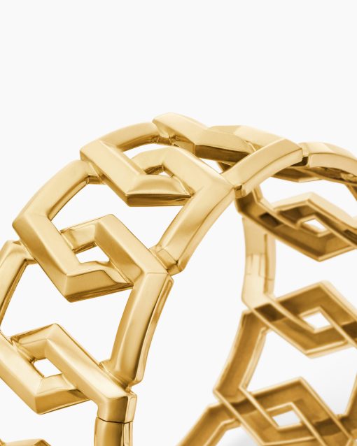 Inspired by Art Deco architecture and the bold elegance of the Jazz Age. 18-karat yellow goldBracelet, 24mmBox clasp