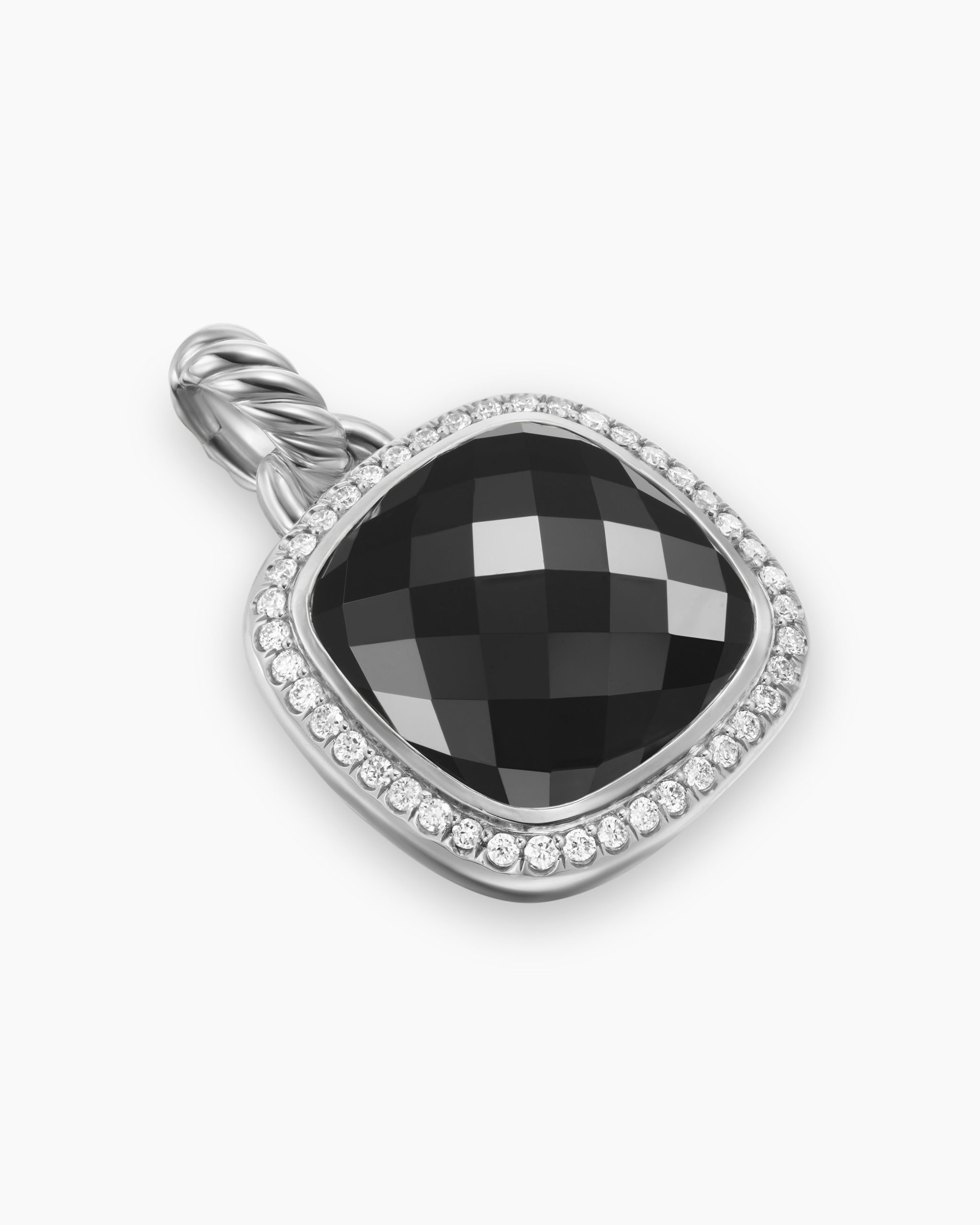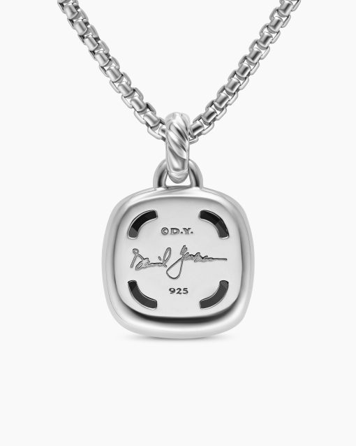 The Albion® Collection’s unique cushion-cut center stone was David Yurman’s innovative solution to use an oversize gemstone in a refined modern setting with classical proportions.Sterling silverBlack onyx, 6.30 total carat weightStone, 15mmPavé-set diamonds, 0.28 total carat weightPendant, 19.2 x 19.2mmTotal length, 27.9mmThis item can be engraved. Please contact customer care for more information.