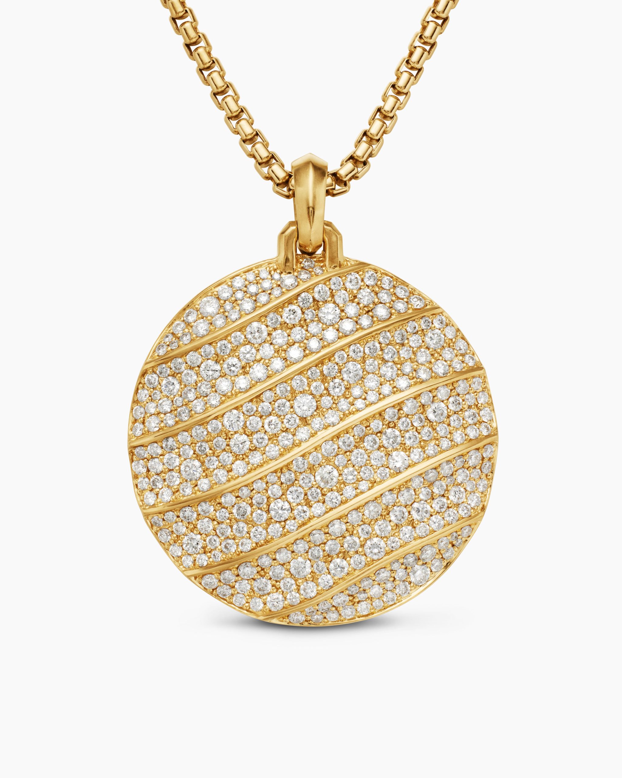 This design is a contemporary vision of Cable, with angles, edges and facets reminiscent of modern architecture. The Cable Edge® collection is made from the finest reclaimed—not freshly mined—18K gold and sterling silver. These precious metals are carefully re-cast by master artisans to conserve them, and to reduce our environmental imprint. nnt18-karat yellow goldntPavé diamonds, 3.87 total carat weightntPendant, 37.4 x 34.2mmntFunctioning bail allows pendant to attach to a necklace or braceletntPlease note: pendant only; chain sold separatelyn