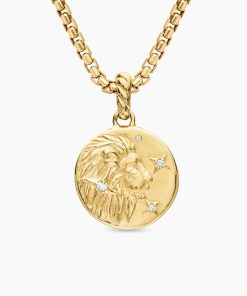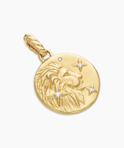 LEOJuly 23–August 22Symbol: LionDetermined, fearless, passionate 18-karat yellow gold Diamonds, 0.04 total carat weightAmulet, 28.7 x 18.8mmFunctioning bail allows pendant to attach to a necklace or bracelet.Please note: amulet only; chain sold separately.Shown with: Box Chain