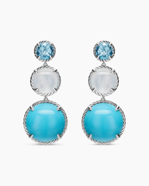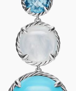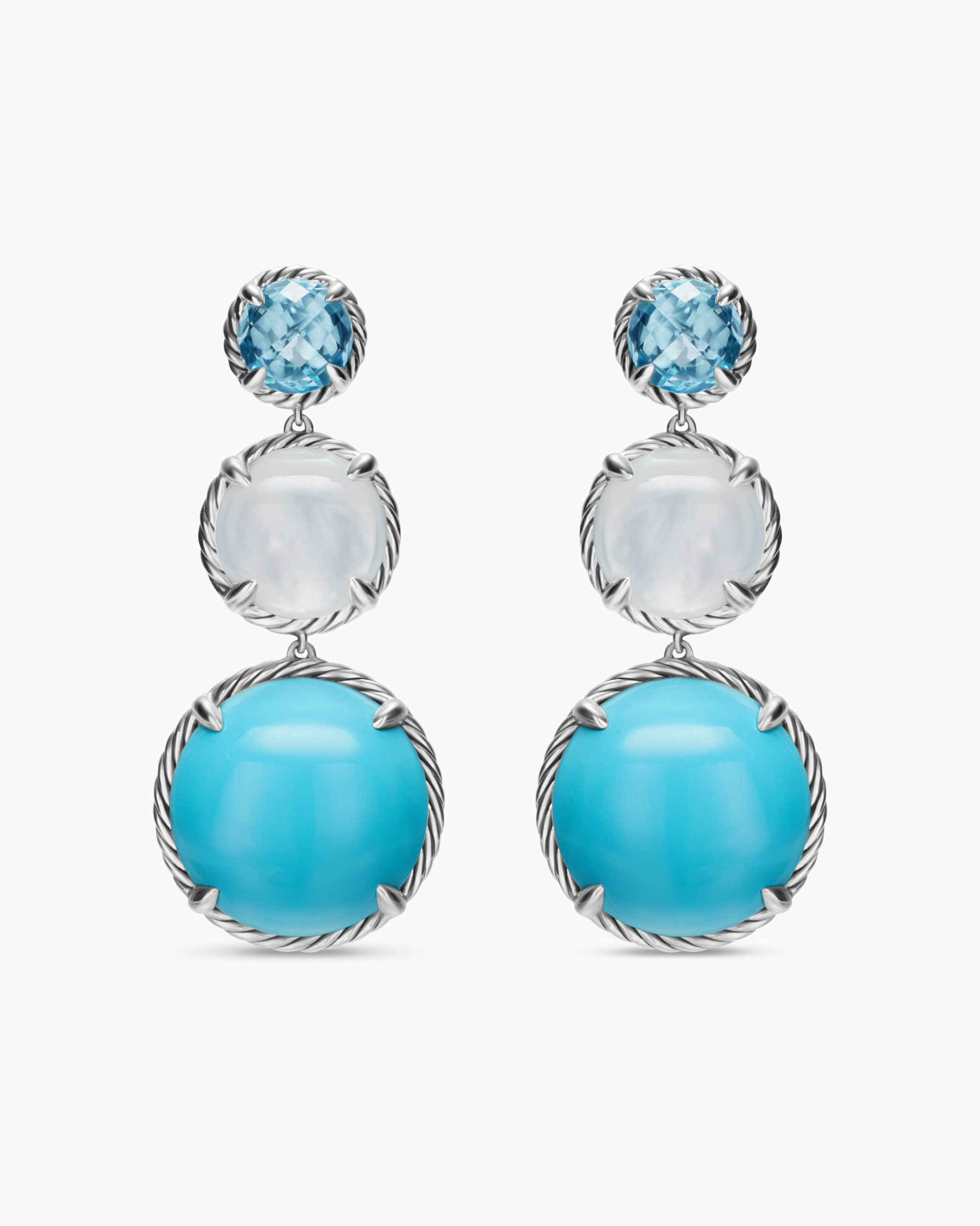 The Châtelaine® Collection is a perfect fusion of David and Sybil Yurman’s combined art—the marriage of a sculptor and a painter—form and color. Sterling silverReconstituted turquoise, milky rose quartz and blue topazEarrings, 47 x 20.3mm